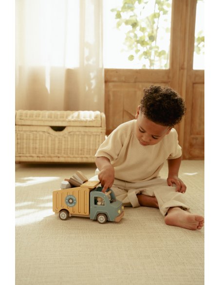 Il est temps de décharger ! Ce camion-benne en bois, équipé d’une caisse basculante fonctionnelle, est livré avec deux chauffeurs. Il comprend divers chargements, tels que des rondins, des pierres et des caisses en bois. Conduisez-le jusqu’au chantier, basculez la caisse pour décharger la cargaison et poursuivez la construction. Ce camion s’intègre parfaitement aux autres véhicules de chantier. Quelle nouvelle ville vas-tu bâtir aujourd’hui ?