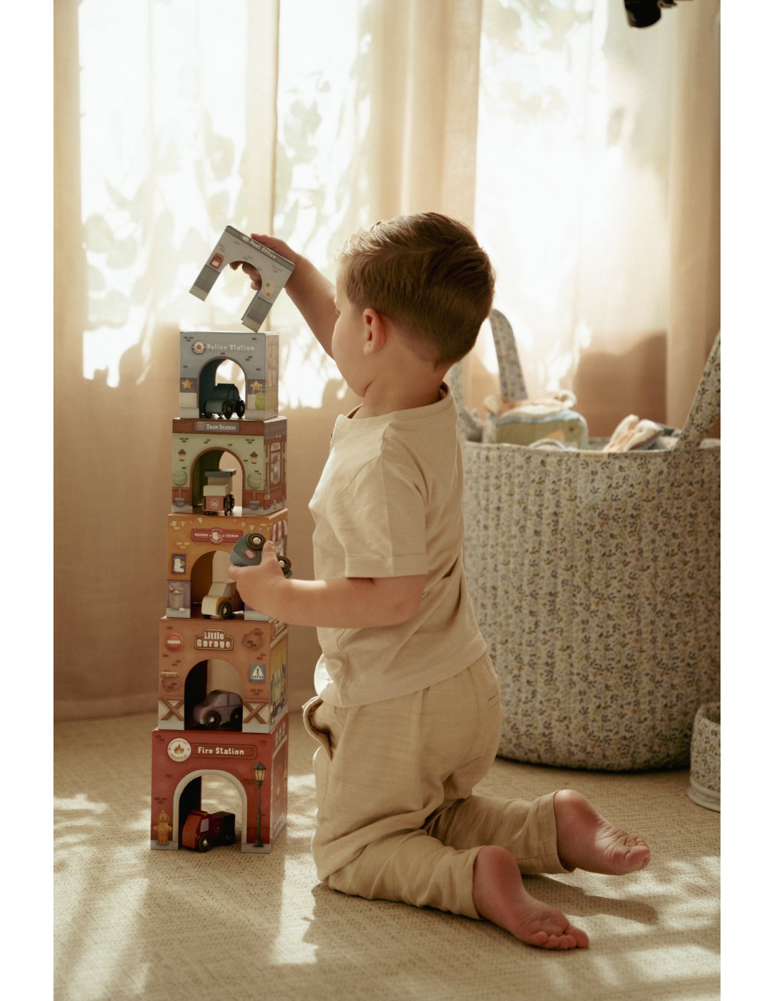 Empilez, construisez et explorez ! Cet ensemble de 6 blocs en carton, décorés de véhicules assortis, offre d'innombrables possibilités de jeu. Les enfants peuvent les empiler pour créer de hautes tours ou les disposer sur le circuit de train XL afin que les véhicules puissent passer dessous facilement. Chaque bloc présente des illustrations uniques et est accompagné d’un véhicule correspondant, parfaitement adapté à sa taille. Une manière ludique de stimuler l’imagination, la coordination et la motricité fine !