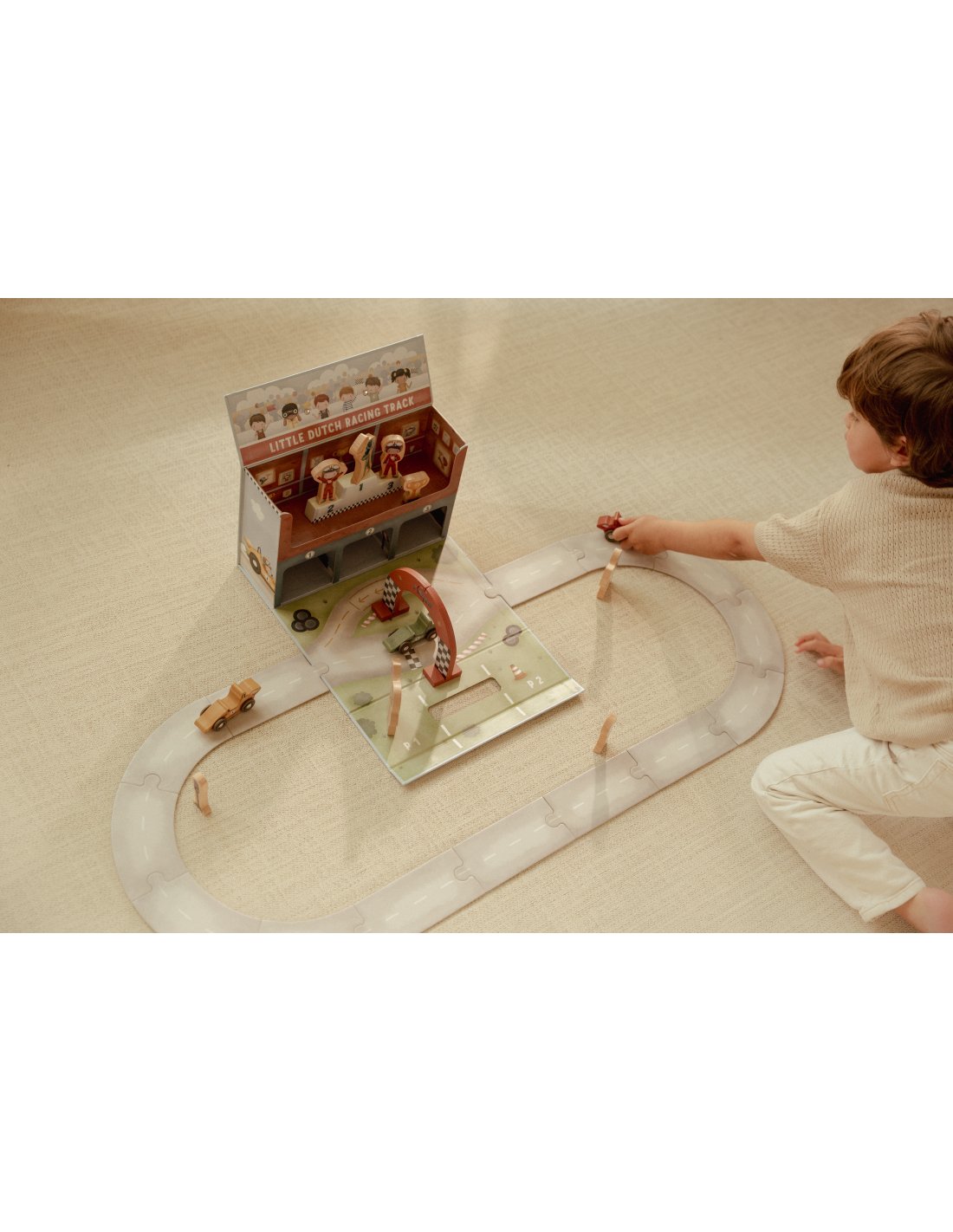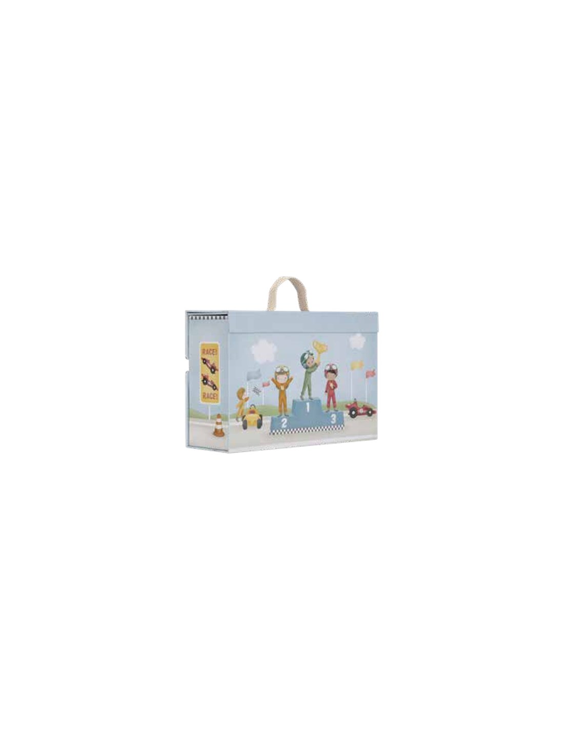 Démarrez vos moteurs ! Cette mallette en carton astucieuse se transforme en un circuit de course complet pour des heures de jeu. L’ensemble comprend tout le nécessaire pour vivre une course palpitante : voitures de course, pilotes, ligne d’arrivée, panneaux de signalisation, trophée et podium des vainqueurs. Le circuit est composé de pièces en carton qui s’assemblent facilement comme un puzzle. Une fois la course terminée, tous les éléments se rangent dans la mallette pratique, prête pour la prochaine aventure sur la piste. Qui franchira la ligne d’arrivée en premier ?