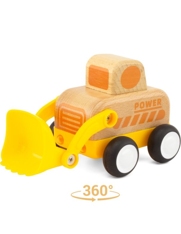 ⦁ Interactivité : La chargeuse est mobile, et en appuyant sur le jouet, les phares s'allument et 3 sons différents de chantier se déclenchent.