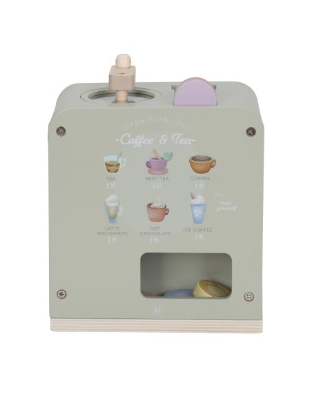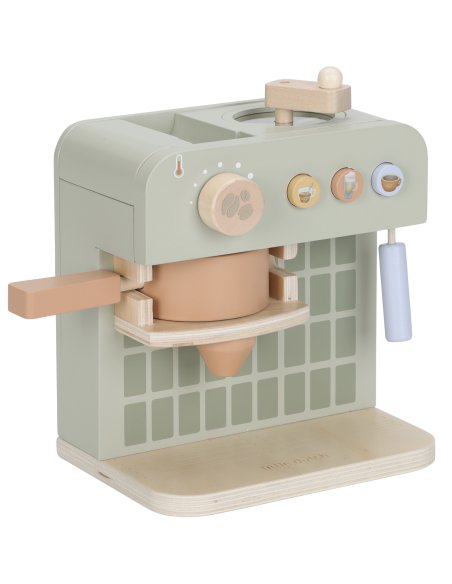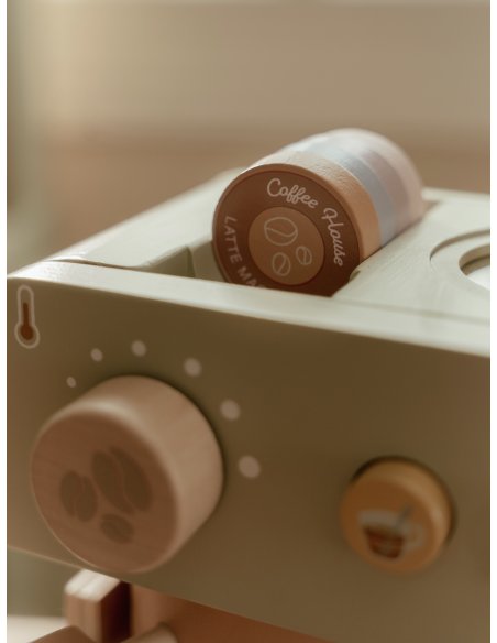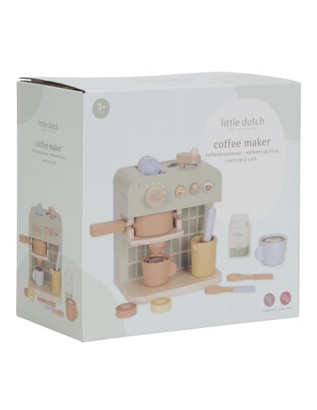 C’est l’heure d’une délicieuse pause ! Avec cette machine à café en bois, les petits baristas peuvent moudre des grains, insérer des capsules et remuer leur boisson comme les grands. L’ensemble comprend deux tasses, deux cuillères, un pot à lait, des briques de lait et même des pochoirs à cappuccino pour une expérience encore plus réaliste. Le dos de la machine est décoré d’illustrations joyeuses qui ajoutent une touche de fantaisie. Parfait à combiner avec le coin café pour encore plus de jeux gourmands ! Alors, ce sera un café ou un thé aujourd’hui ?