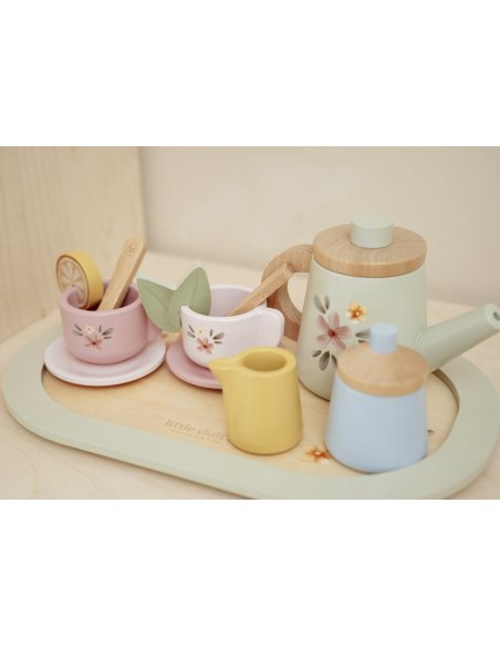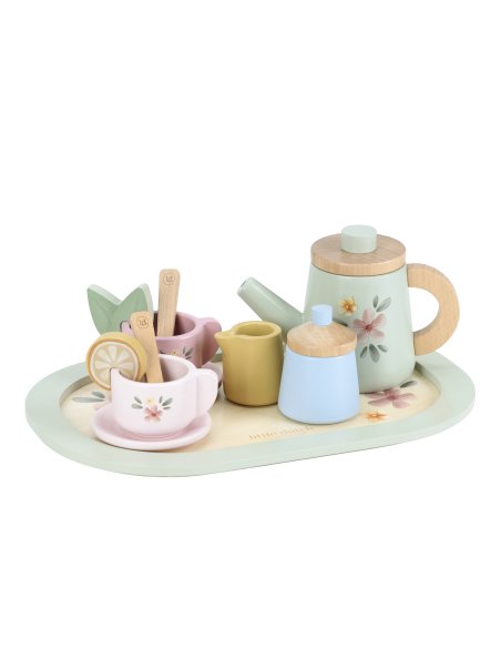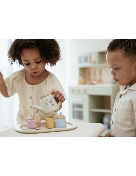 Prenons un thé ensemble ! Avec cet adorable service à thé en bois, les enfants peuvent servir de délicieuses tasses de thé, avec du lait, du sucre, une rondelle de citron ou des feuilles de menthe. Tous les ingrédients pour un moment de thé entre amis, peluches ou poupées ! L’ensemble comprend tout ce qu’il faut pour recréer une vraie cérémonie du thé, pleine d’imagination et de partage.