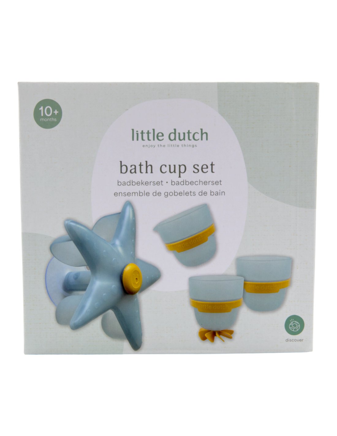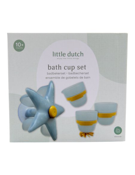 Le bain devient un moment encore plus agréable avec cet ensemble de bain bleu. L'ensemble contient 4 éléments équipés de ventouses : une roue en forme d'étoile de mer, deux tasses de bain et une tasse verseuse. Accrochez les éléments sur la paroi de la baignoire ou le mur de la douche et versez de l'eau avec le gobelet verseur pour faire tourner la roue. L'ensemble est emballé dans une boîte en couleurs. Convient aux enfants de 12 mois et plus.