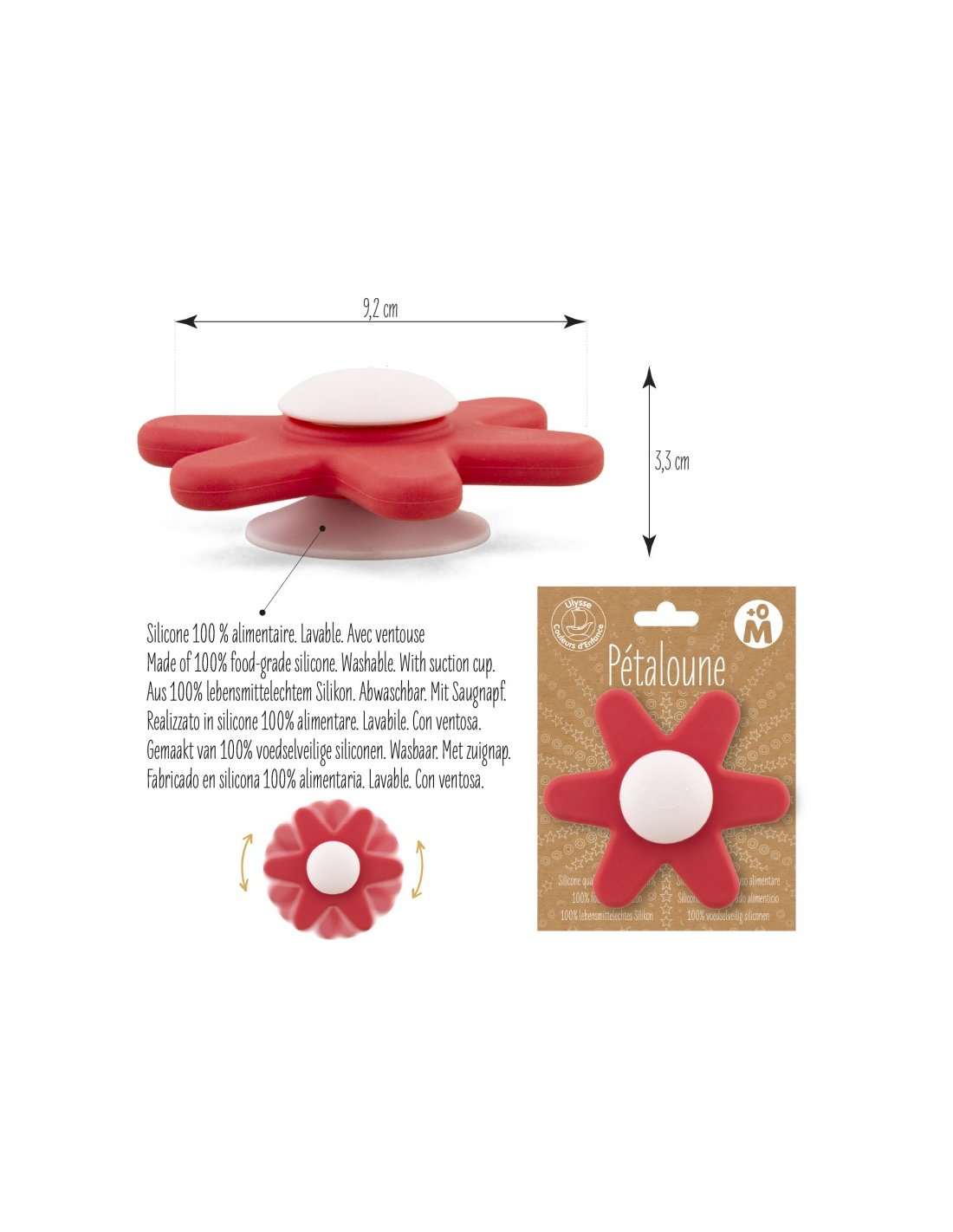- Forme de fleur à 6 pétales arrondis, conçue pour une prise en main facile par les petites mains.