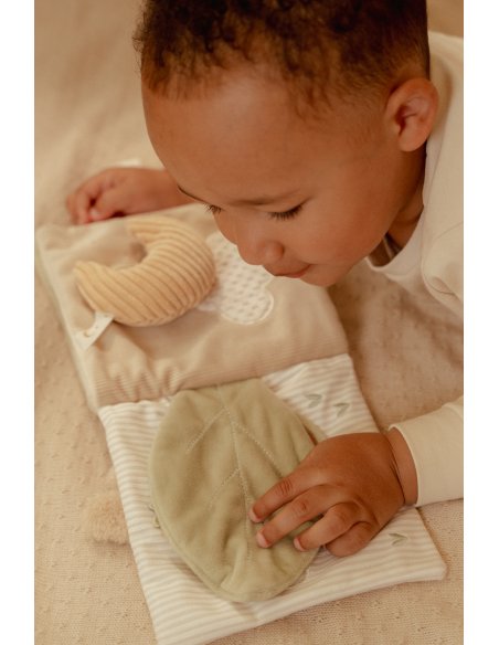 Avec le livre d'activités Newborn, bébé explore un univers enchanteur aux côtés d’un adorable lapin et d'une jolie oie ! Conçu pour éveiller les sens et stimuler la motricité, ce livre en tissu propose une variété de textures, un miroir caché par une feuille en tissu bruissant, un hochet lune, un anneau de dentition étoile et des étiquettes à attraper au toucher agréable. Chaque page réserve son lot de découvertes pour encourager la coordination œil-main tout en s’amusant. Léger et facile à manipuler, il accompagnera bébé dès la naissance pour des moments de jeu et d’éveil inoubliables. Un compagnon sensoriel et tout doux, idéal pour émerveiller les petits explorateurs !