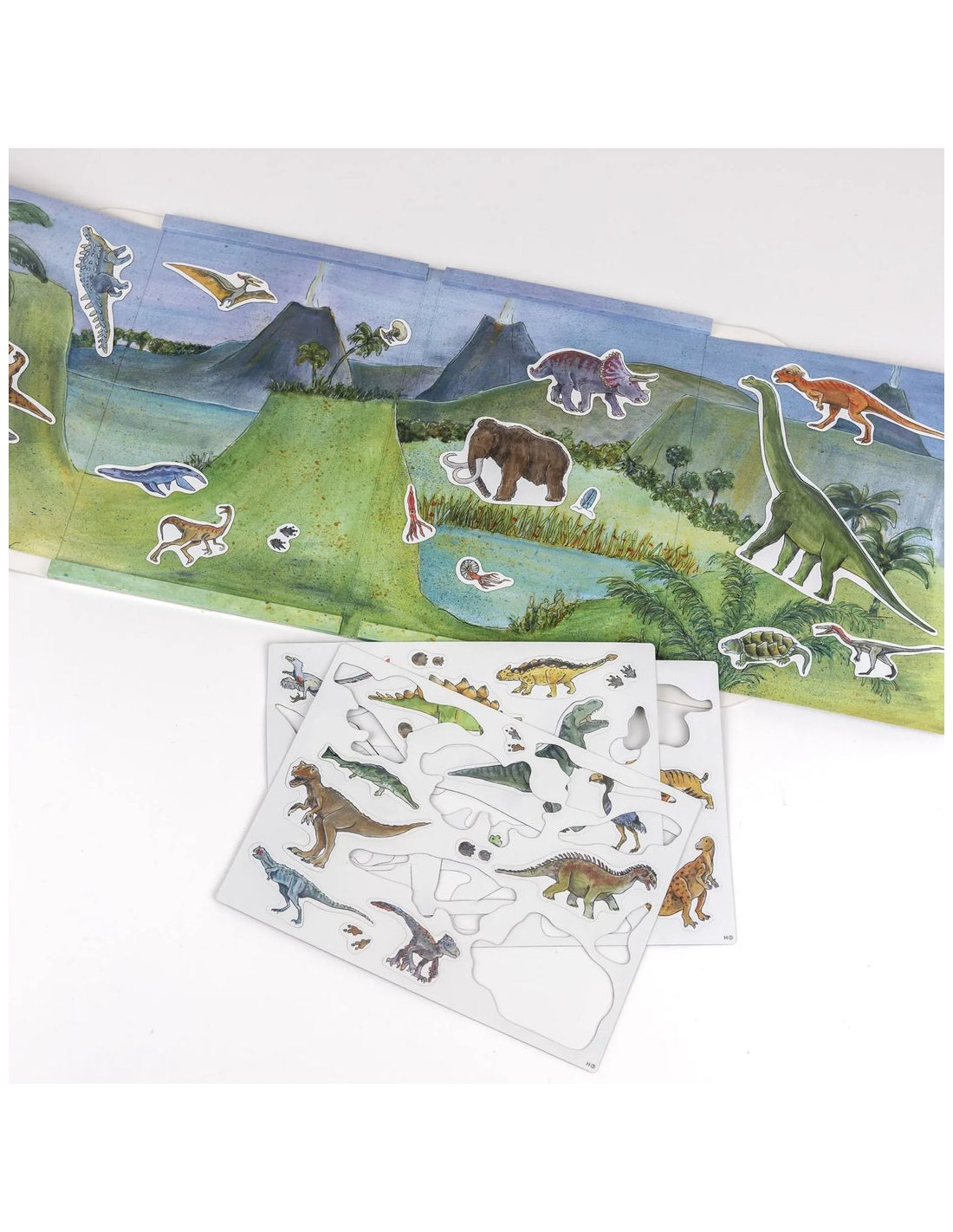 Transformez n'importe quel moment de calme en aventure préhistorique ! Des dinosaures magnétiques colorés prennent vie sur le fond peint, transformant l'attente en jeu imaginatif.