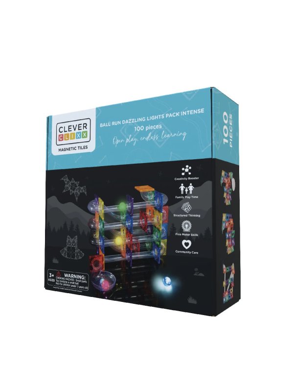 Construisez un parcours à billes super fun avec ce Kit de parcours avec effet lumineux de 100 pièces de Cleverclixx. Avec ce set, votre enfant construira le parcours à billes le plus cool pour se lancer à tombeau ouvert dans la course ! Votre enfant est totalement libre de laisser s’exprimer sa créativité et son imagination : il trouvera sans peine des idées de construction pour jouer avec son set Cleverclixx préféré.