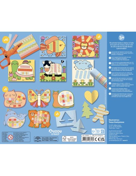 Un coffret contenant une paire de ciseaux, un tube de colle et 15 feuilles pour réaliser les activités suivantes : découpage, collage, pliage et tressage. Tout pour s'amuser et personnaliser d'adorables tableaux d'animaux ! ( de 3 à 10 ans )