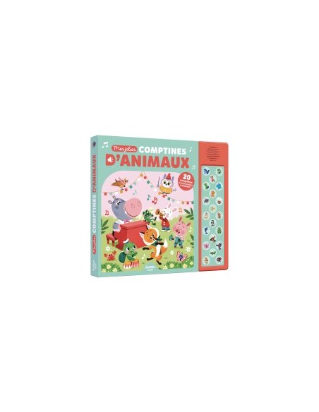 Un magnifique livre sonore avec comptines à découvrir autour d'une thématique phare : les animaux. ( de 2 à 5 ans )Le livre tout-carton est accompagné d'un boîtier sonore adapté aux tout-petits, pour pouvoir chanter ensemble ses comptines préférées et s'initier au rythme !Chaque puce correspond à une comptine d'une belle qualité sonore : parfait pour éveiller le tout petit avec plus de 6 minutes d’écoute au total !20 comptines incontournables .