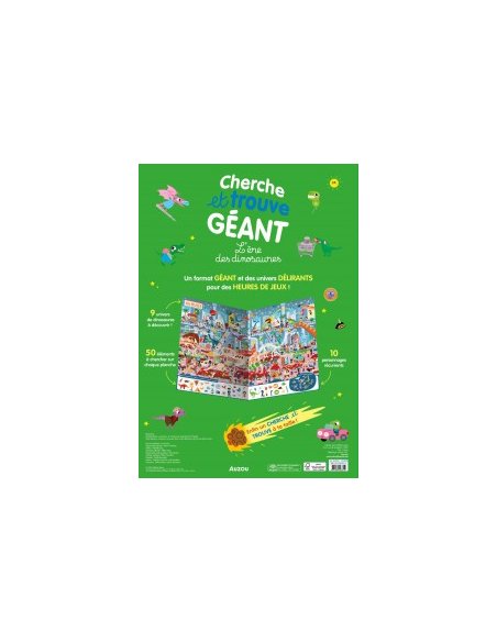 Plonge dans l'ère des dinosaures et retrouve les dans toutes les situations : dans la mer, dans le ciel, dans le froid, en croisière… et bien plus encore ! Découvre 9 univers détaillés, et 50 éléments à retrouver sur chaque page, dont 10 personnages récurrents.( à partir de 5 ans ) .