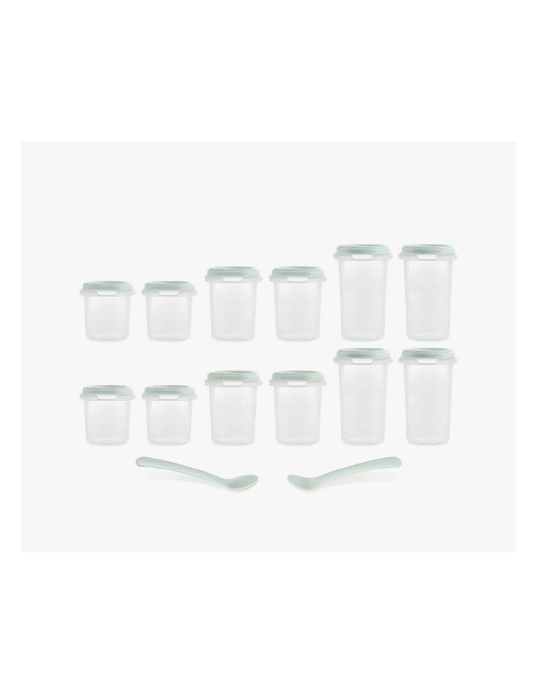 Ce pack de 12 récipients hermétiques comprend également deux cuillères anatomiques pour bébé, afin que vous puissiez nourrir votre bébé directement depuis le récipient où que vous alliez.