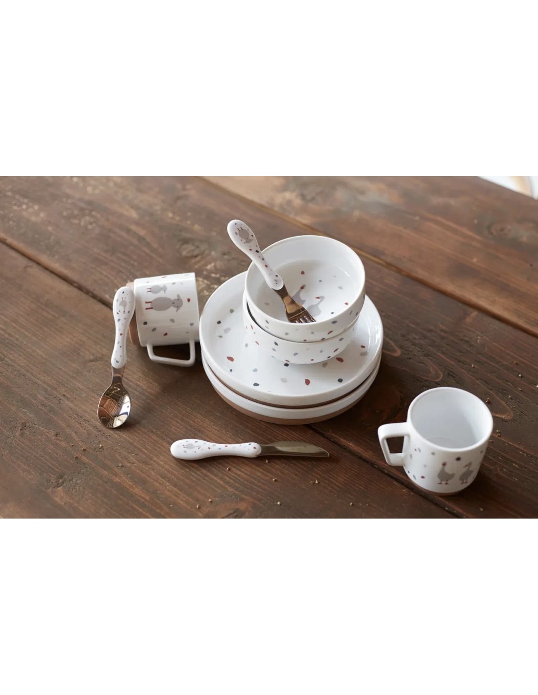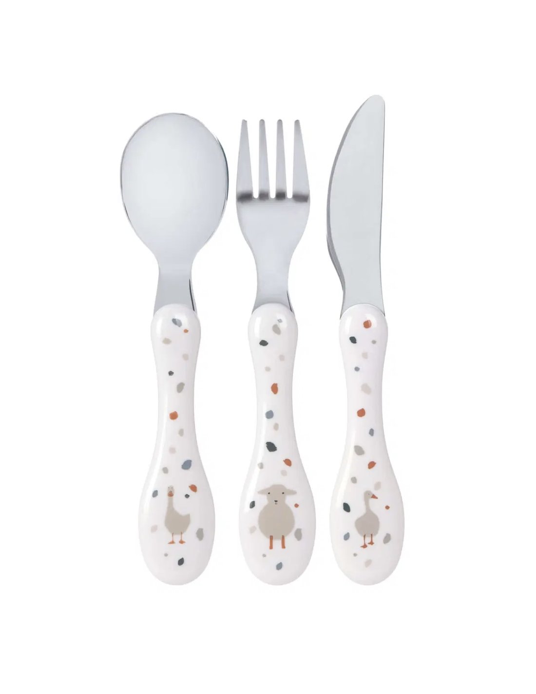 Avec ces couverts pour enfant en inox de la collection Tiny Farmer composés d’une fourchette, d’une cuillère et d’un couteau, manger tout seul comme un grand devient un vrai plaisir. Les couverts sont légers, stables et vont au lave-vaisselle.