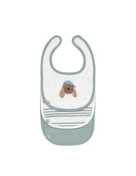 Ces bavoirs LÄSSIG pour nouveau-nés en verts et en 100 % coton (bio) de la collection Tiny Team protègent les vêtements des tout-petits pendant l'allaitement et les repas. Textile doux pour la peau, absorbant et facile d'entretien.