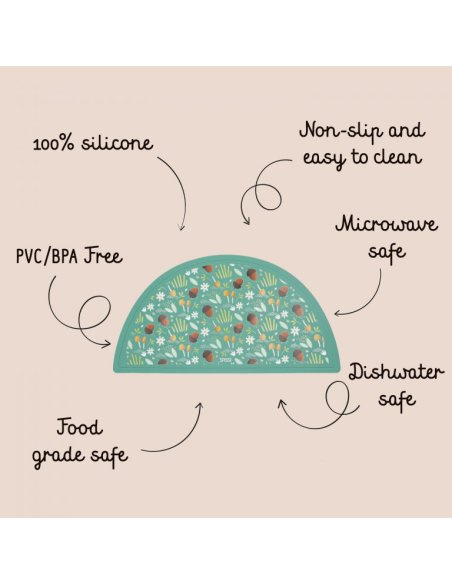 Le dessous de plat en silicone souple du renard Crunchy est idéal pour protéger les surfaces pendant les repas ou pour être emporté à l'école maternelle. Fabriqué en silicone alimentaire, il passe au lave-vaisselle.