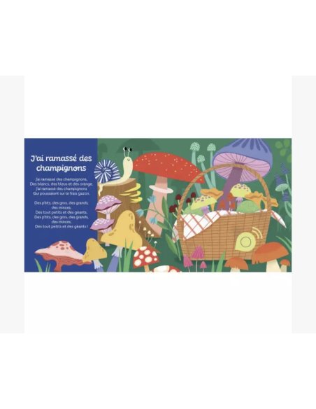 Des comptines courtes, faciles à mémoriser, chantées en crèche et en maternelle sur la thématique de la forêt. Louvrage contient un bouton on/off (pour durer plus longtemps) et des piles AAA (faciles à changer) ! 6 comptines : - Promenons-nous dans les bois - J'ai ramassé des champignons - Coucou hibou - 1, 2, 3, nous irons au bois - Un grand cerf - Il court, il court, le furet