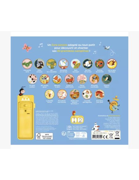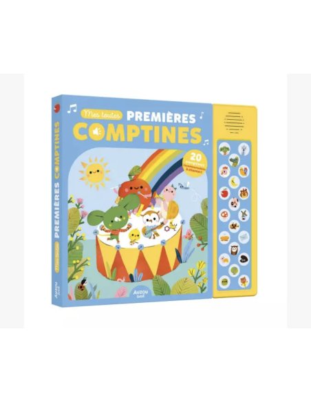 Une nouveauté sonore au catalogue Auzou : Mes premières comptines ! Dans ce livre, on retrouve : - un livre tout carton avec 20 comptines célèbres illustrées (avec les paroles pour chanter) - un module avec 20 puces sonores pour écouter les comptines et un bouton on/off Un incontournable de toutes les bibliothèques des enfants !