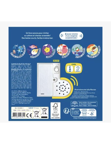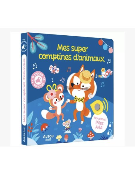 6 puces sonores d’une très belle qualité auditive et des piles AAA faciles à changer ! Les 6 comptines : - Le loup, le renard et la belette - Les petits poissons - L'araignée Gypsie - Une puce, un pou - Il pleut, il mouille - Il court, il court, le furet.