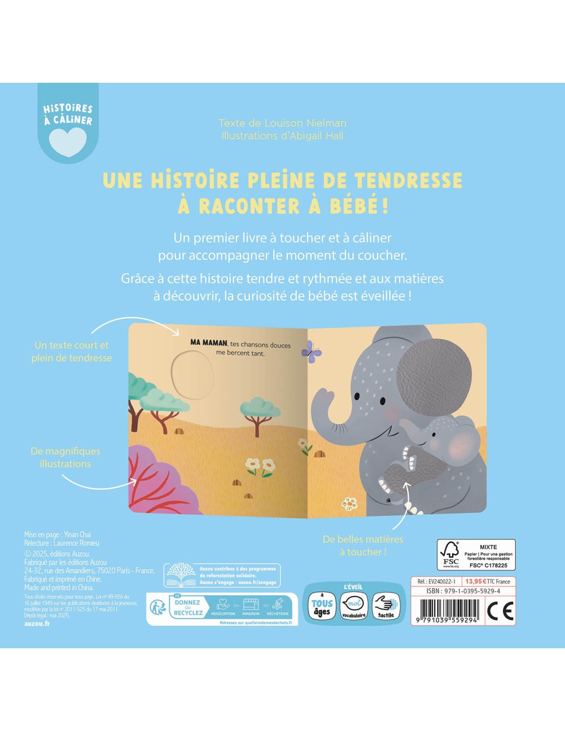 Un premier livre à toucher et à câliner pour accompagner le moment du coucher. Grâce à cette histoire tendre et rythmée et aux matières à découvrir, la curiosité de bébé est éveillée !