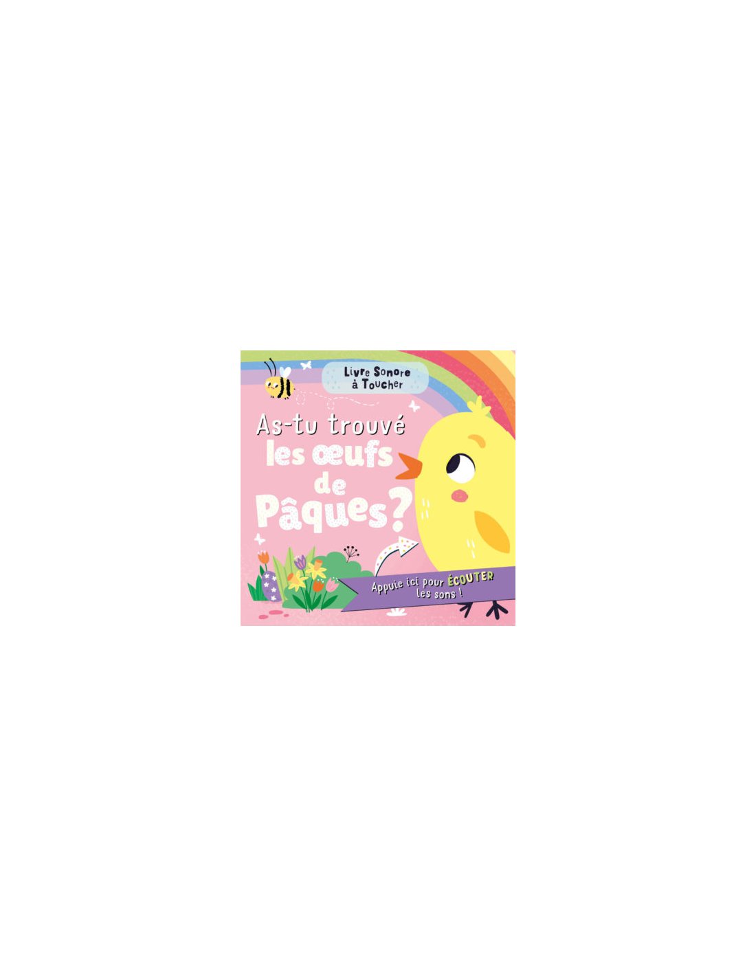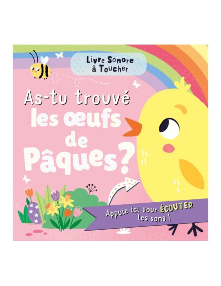 La petite abeille parcourt le jardin à la recherche d’un œuf de Pâques… Un livre joyeux et coloré pour découvrir le jardin avec 6 sons et 6 textures à toucher. Des questions/réponses favorisent l’interactivité et invitent à chercher des détails dans les images.