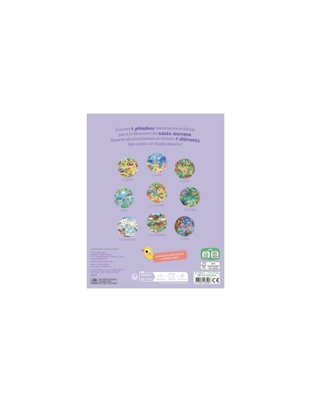 À travers 9 planches foisonnantes de détails, les tout-petits partent à la découverte des bébés animaux.