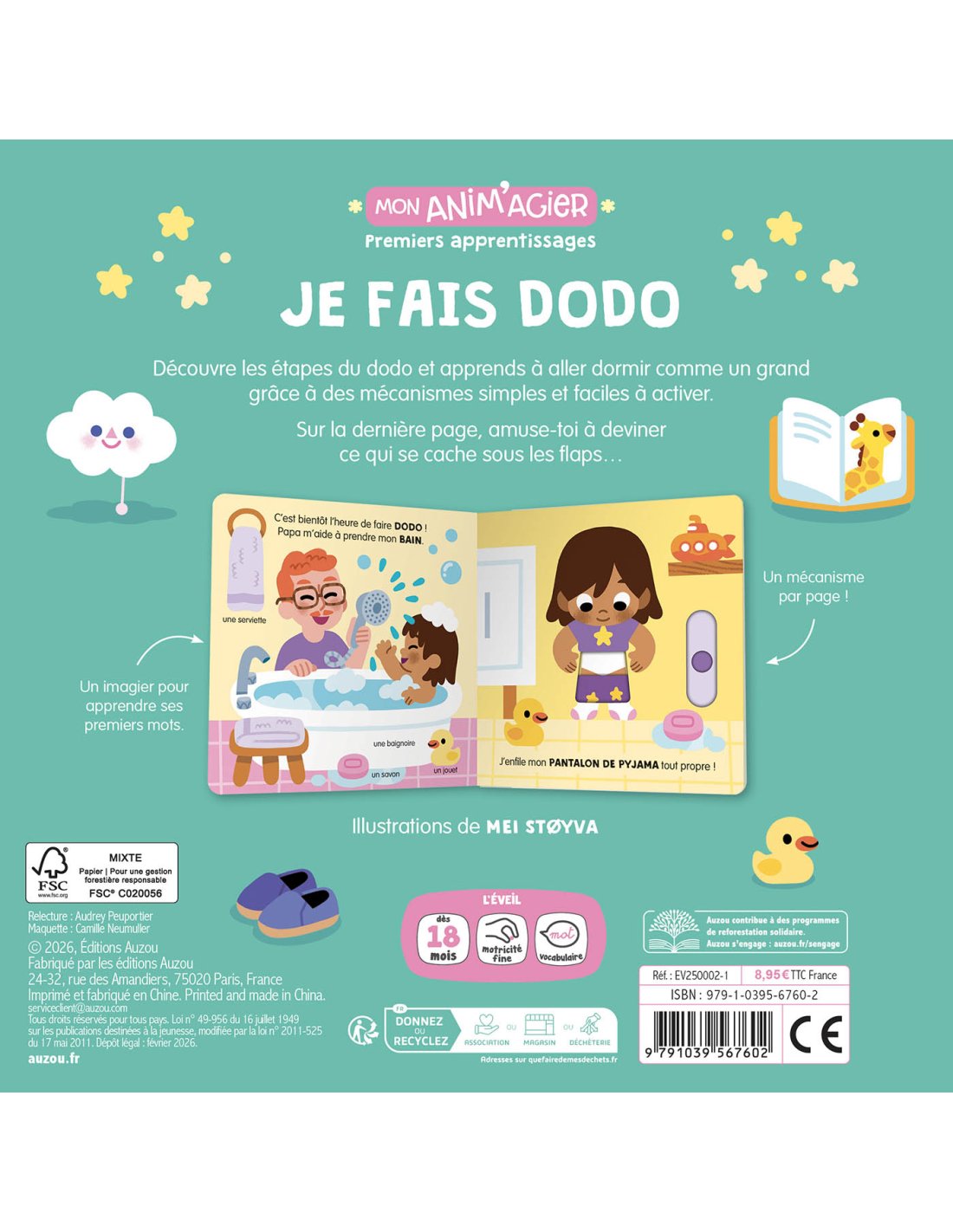 Avec ces 5 mécanismes faciles à activer pour les petites mains, et ses 4 flaps à souleverà la fin pour valider les acquis, ce livre interactif offre un outil ludique completpour les enfants et leurs parents dans le rituel du soir.De belles illustrations réalistes et colorés permettent aux enfants de s’identifier facilement.