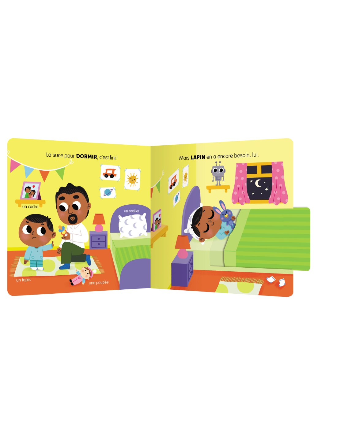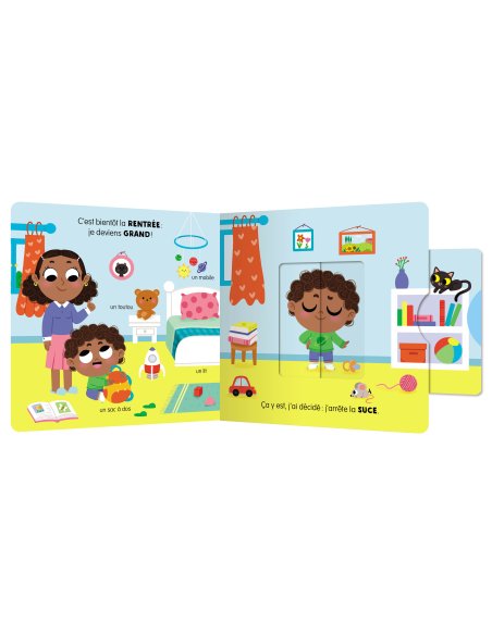 On retrouve toujours 5 mécanismes solides, logiques et adaptés aux petites mains, faciles à manipuler, et une double finale qui récapitule les apprentissages de façon ludique, grâce à un jeu de flaps.