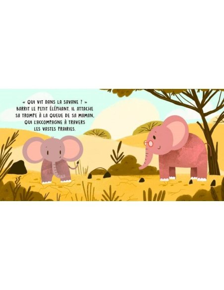 Un livre sonore avec des illustrations simples et délicates et six sons délicieux, pour apprendre à reconnaître les sons des animaux qui vivent dans la savane. Pas besoin d'appuyer sur un bouton : il suffit de tourner la page pour lancer les sons !