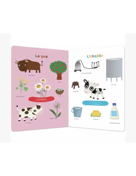 Un livre sur le thème de la ferme avec différentes textures à toucher sur chaque page.