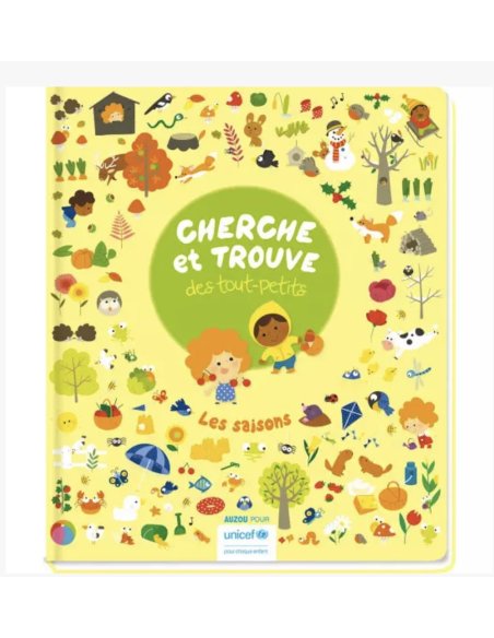 Printemps, été, automne, hiver, 8 éléments à retrouver à chaque page ainsi qu'une petite souris qui se cache à toutes les pages.