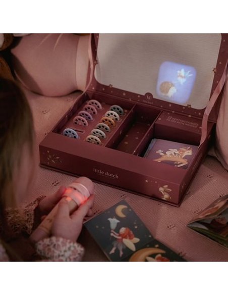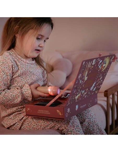 Donnez vie à l'émerveillement grâce aux histoires de cette torche projecteur pour enfants ! Cette torche spéciale contient 12 disques, chacun avec sa propre histoire qui prend vie grâce à de magnifiques illustrations uniques que vous projetez sur le mur. Chaque histoire est accompagnée d'un livret reprenant les illustrations. La torche du projecteur est dotée d'une solide poignée en bois et fonctionne à l'aide de piles, ce qui permet de l'emporter partout. Après l'histoire, il suffit de ranger la torche et tous les accessoires dans la jolie boîte de rangement. Parfait pour les enfants qui aiment découvrir et vivre des histoires.