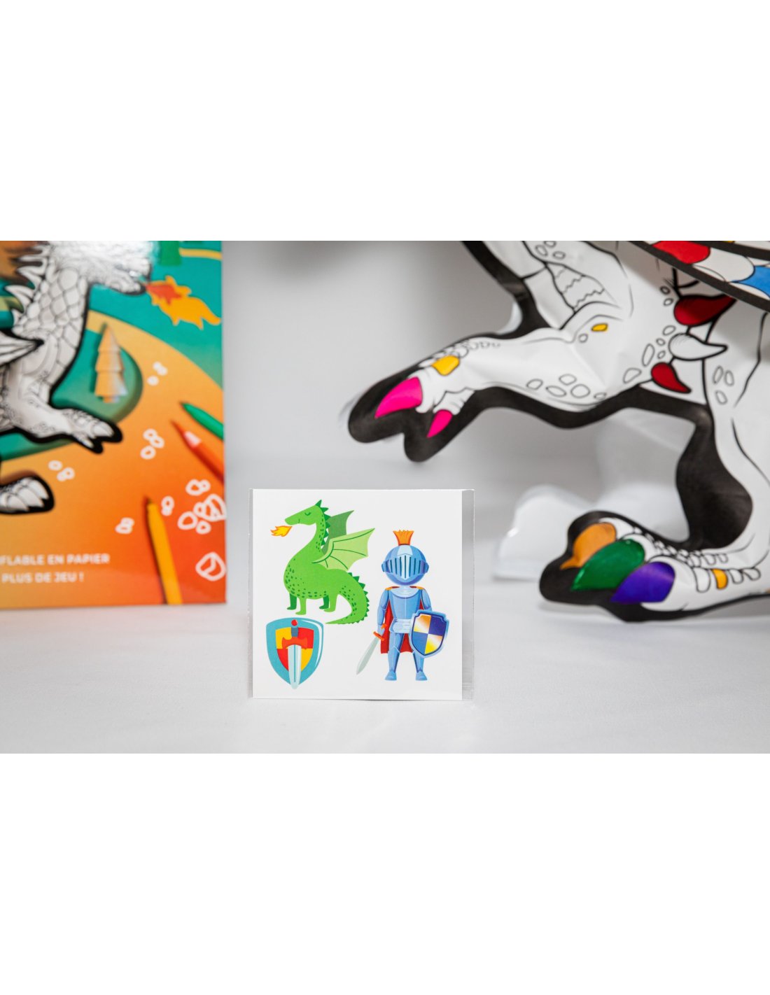 Contenu 1 dragon géant gonflable + 1 paille en papier + une planche de tatoos chevalier