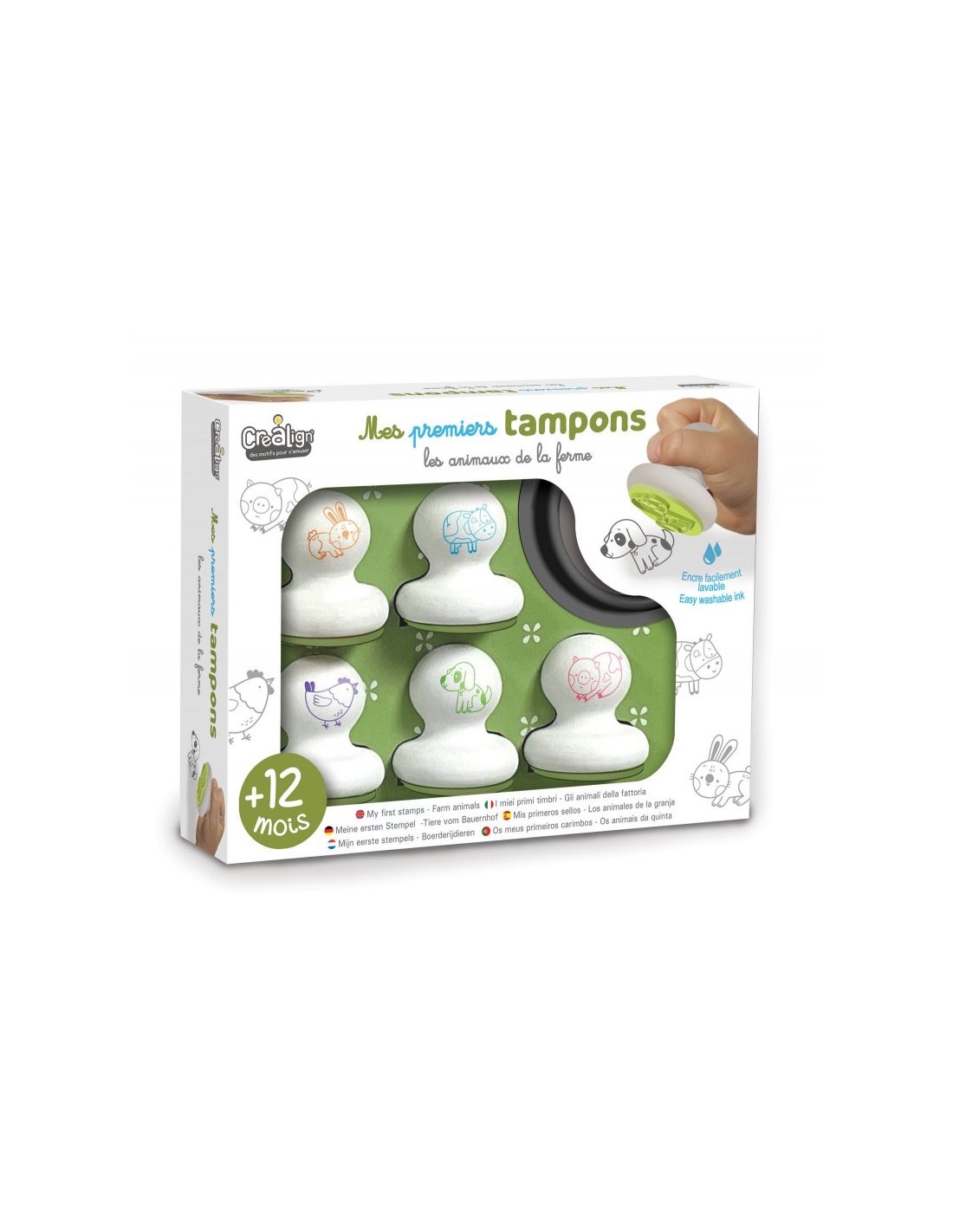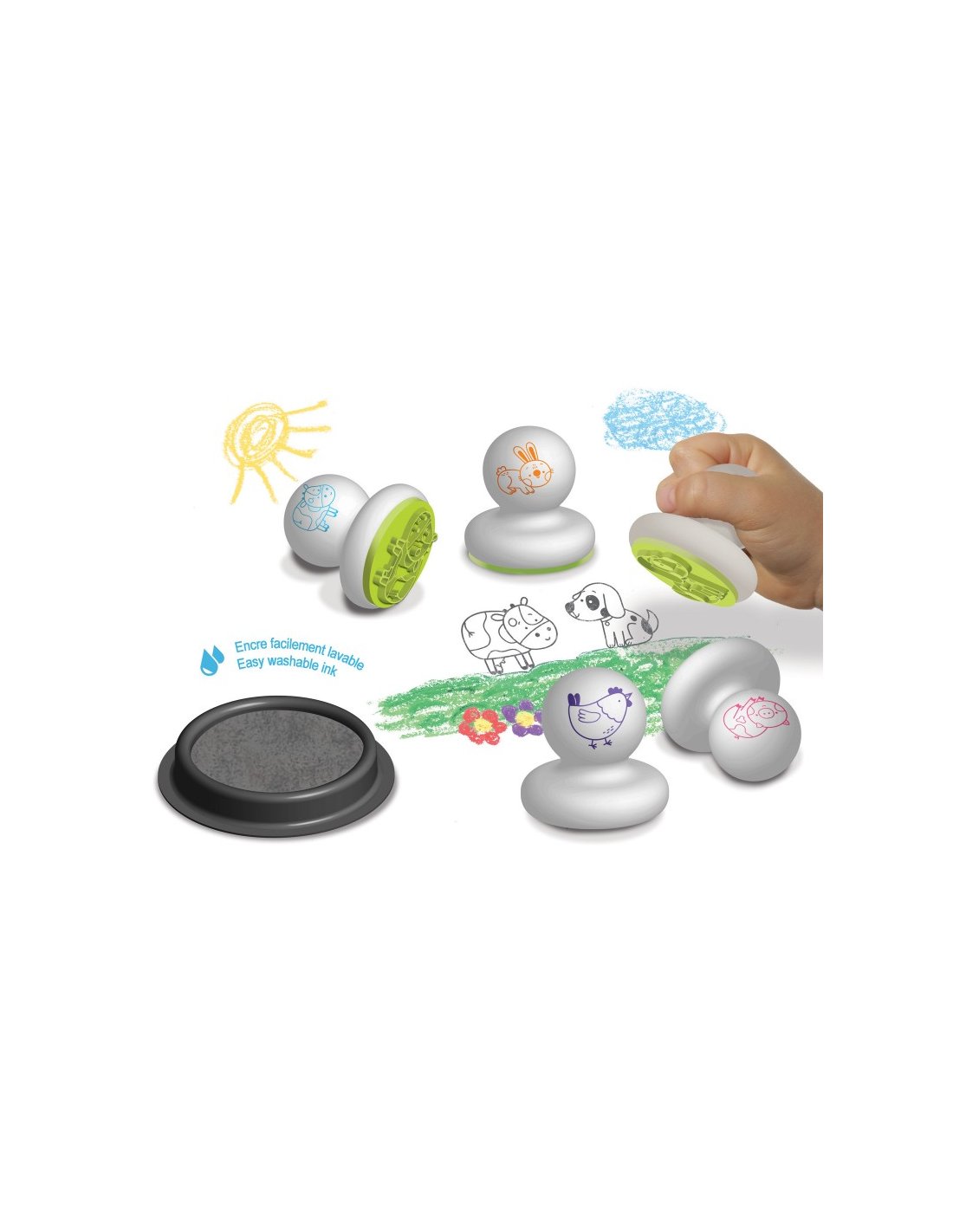 Un pack sur le thème de la ferme contenant 5 tampons en mousse et un encreur maxi format. La poignée ronde facilitera la prise en main. Ce coffret permettra aux tout-petits de découvrir le plaisir du tampon tout en les aidant à développer leur motricité fine.
