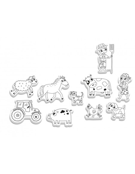 Des personnages à tamponner afin de créer des histoires et des scènes autour de la ferme. Les enfants réaliseront leurs plus beaux dessins !