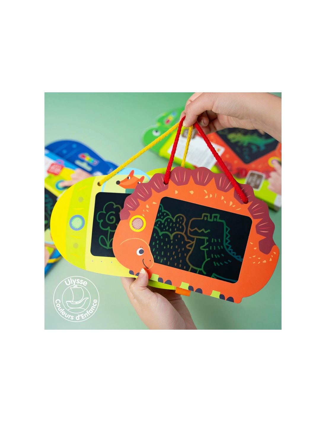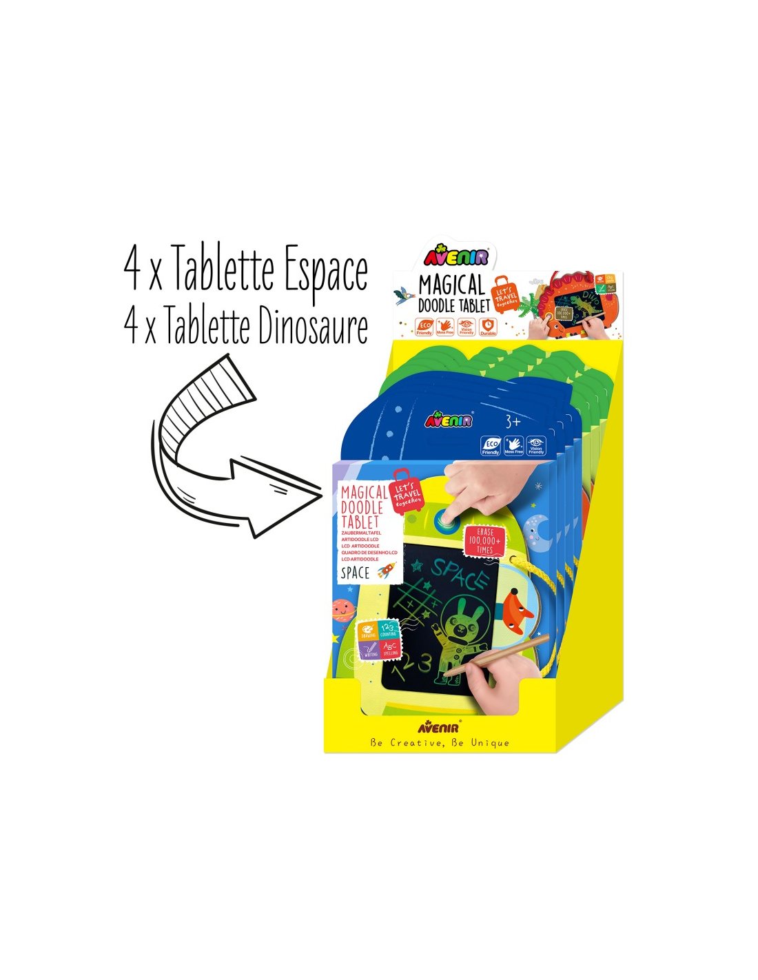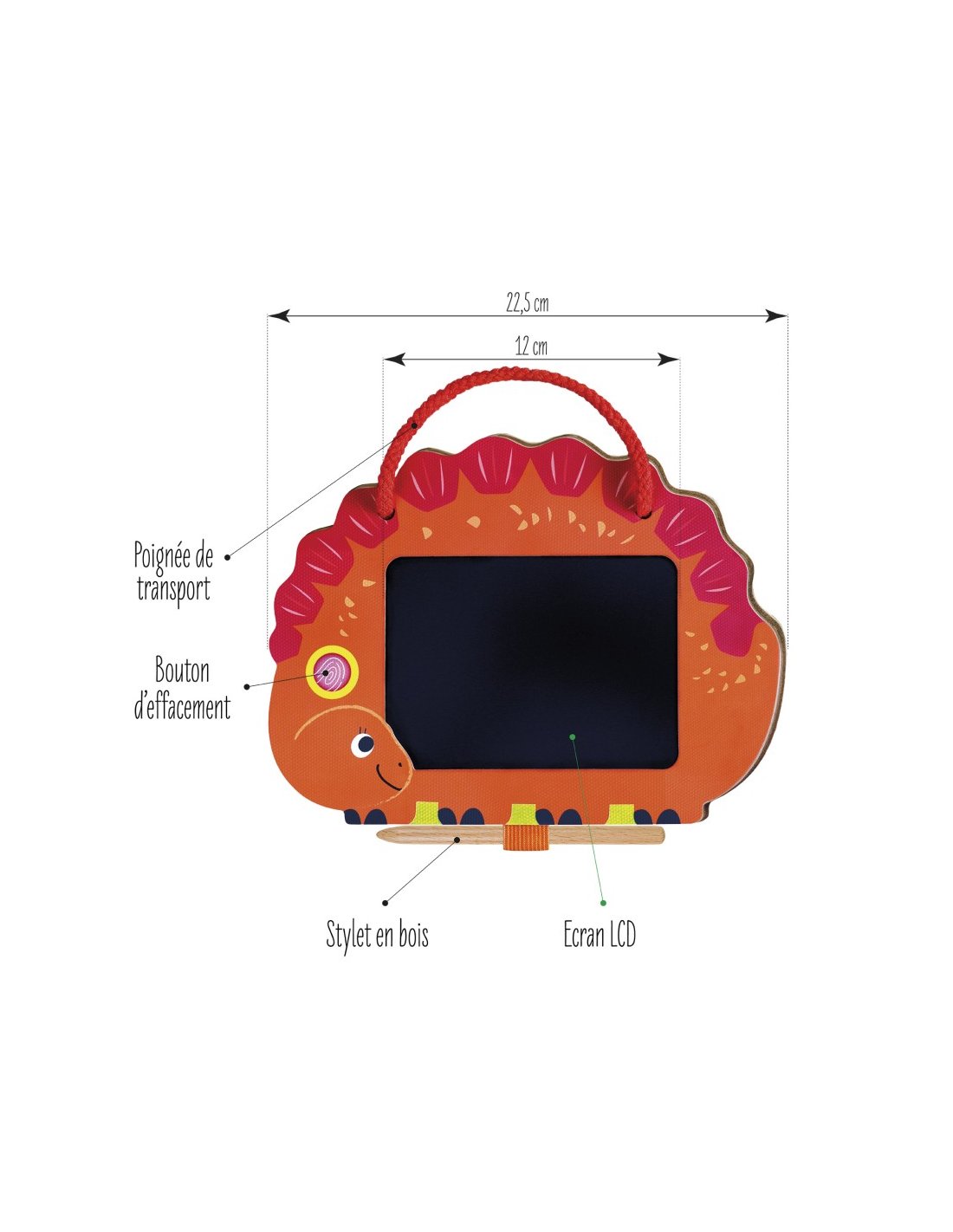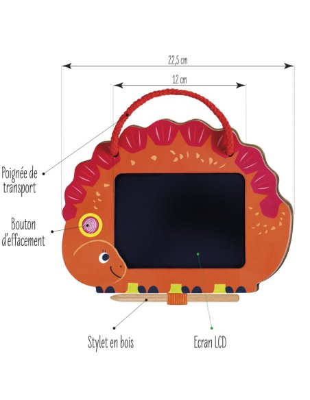Elle comprend une tablette de dessin électronique ainsi qu’un stylet épais, parfait pour créer des images, écrire des messages et s’amuser à dessiner. D’une simple pression sur un bouton, les dessins s’effacent facilement, avec une durabilité allant jusqu’à 100 000 utilisations.