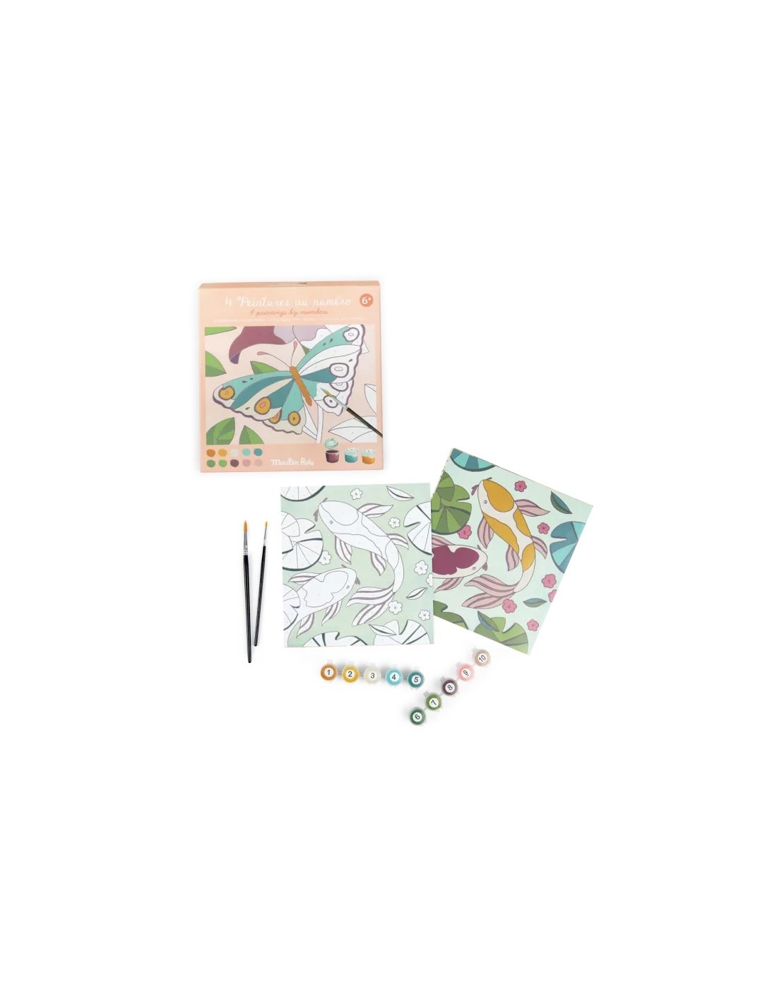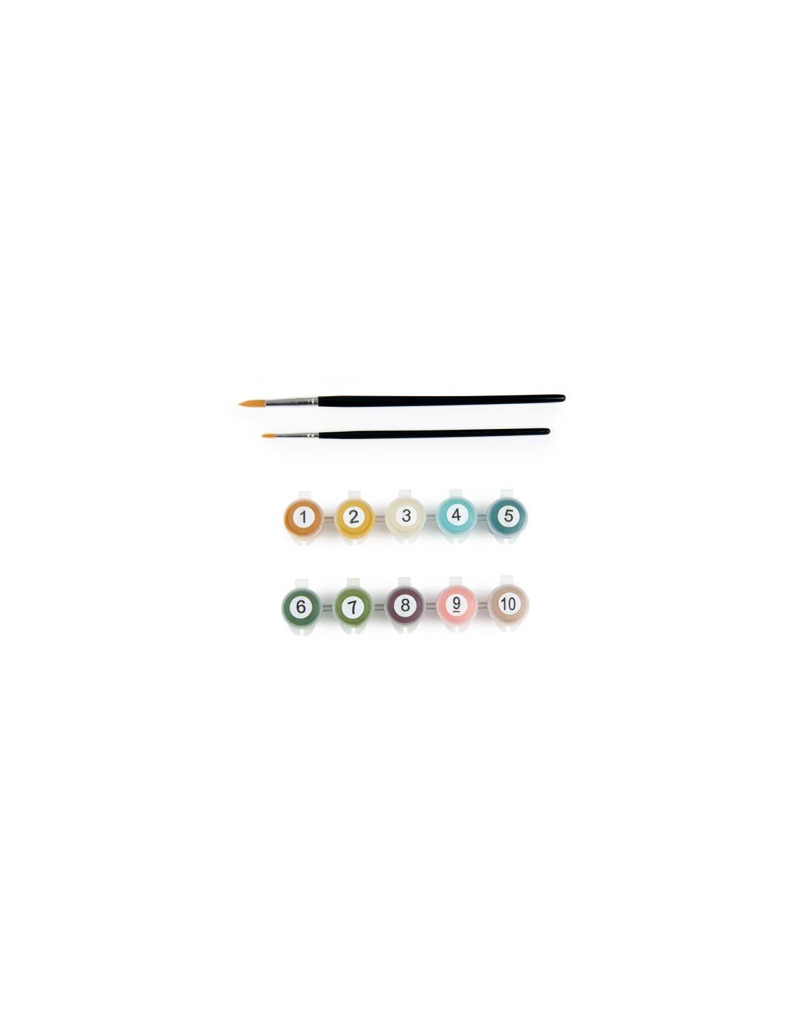 Laisse-toi guider par les numéros dans chaque case qui t'indiquent la couleur de peinture à utiliser et regarde ton image prendre vie à chaque ajout de couleur. Contient 4 images à peindre dessinées pas Cécile Blindermann, 2 pinceaux et 10 pots.