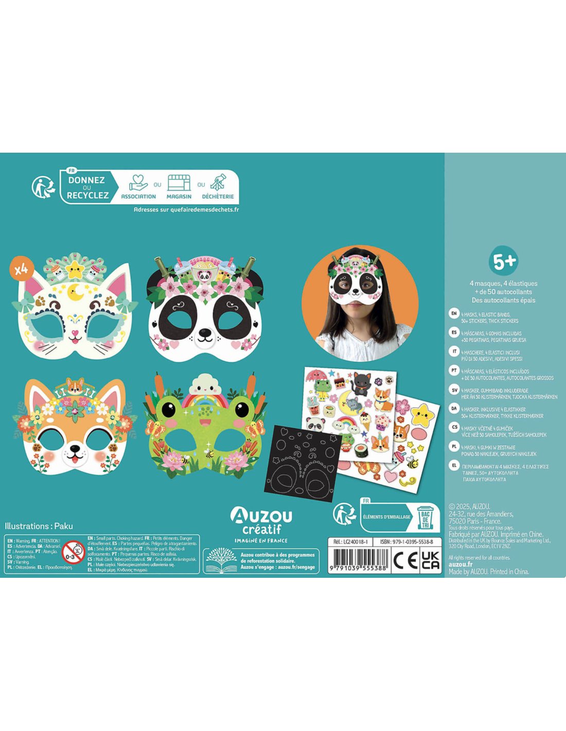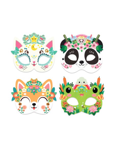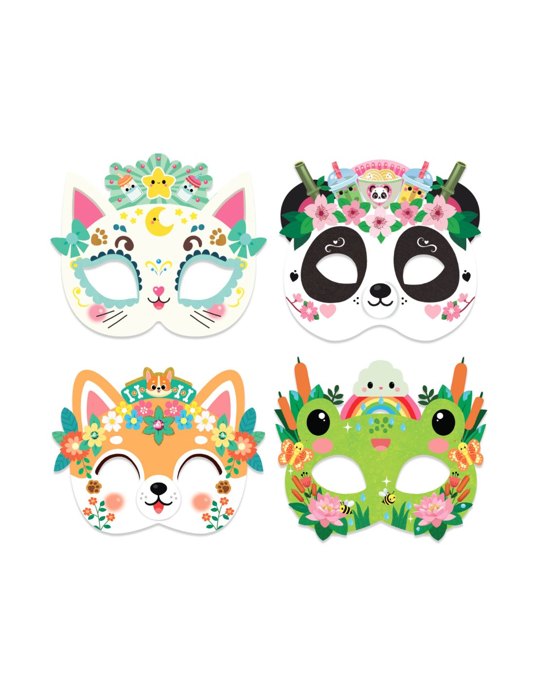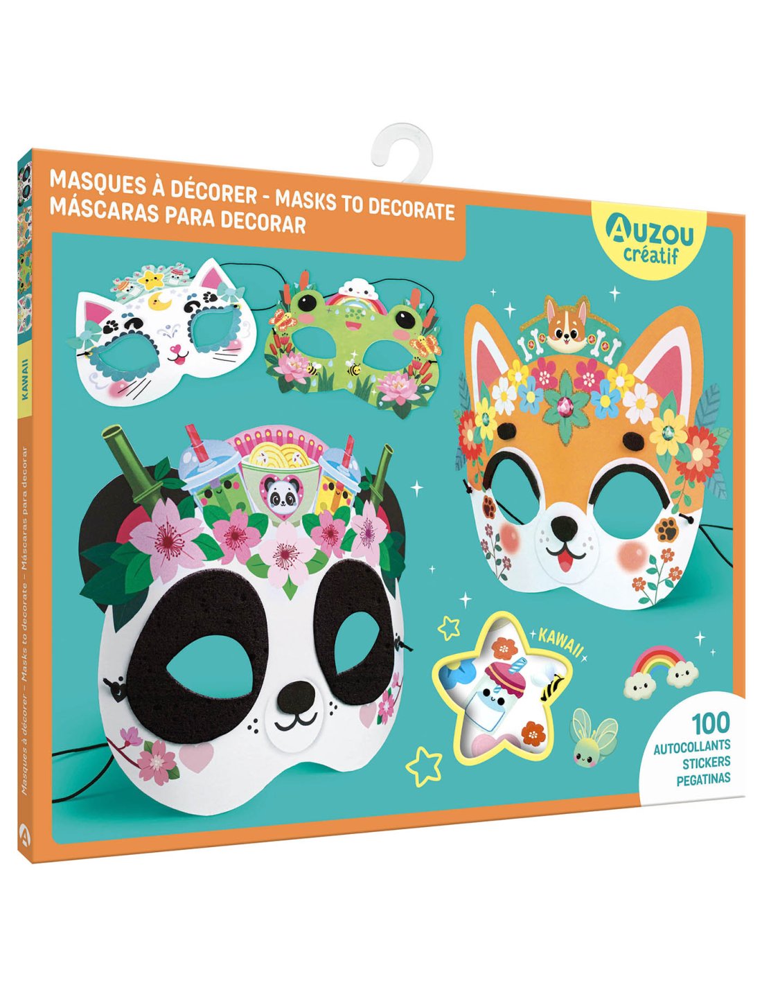 Découvre dans cette magnifique pochette 4 superbes masques Kawaii à décorer avec 100 autocollants. Chat kawaii ou panda, quel animal incarneras-tu pour le carnaval ?