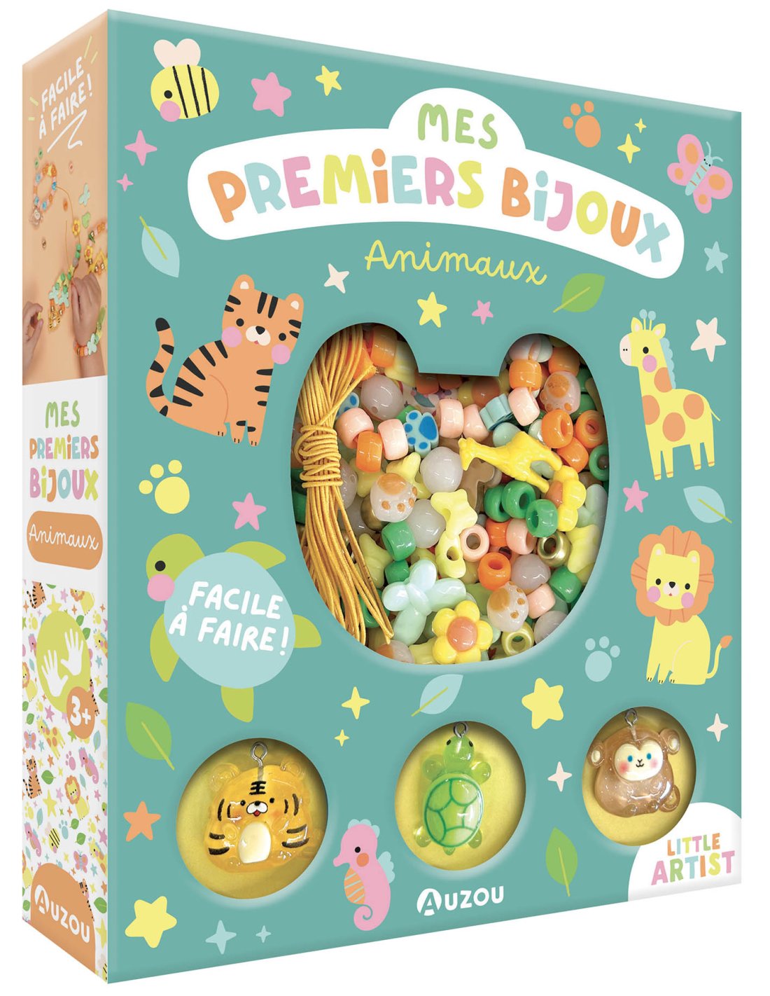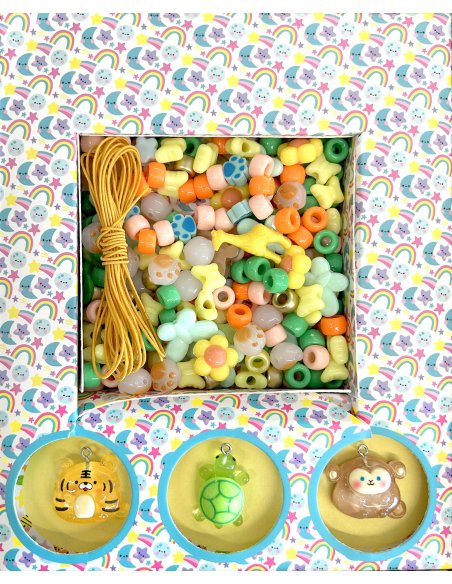 Dès 3 ans, l’enfant trouvera dans ce coffret un assortiment de perles de couleurs et de formes différentes, ainsi que