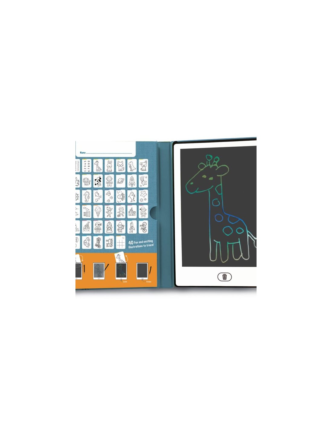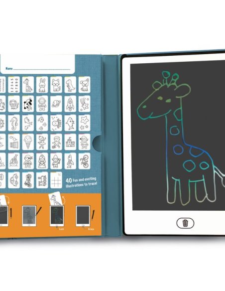 Une tablette ludique pour développer la créativité des enfants. Avec 40 illustrations à thème et un effacement instantané, le dessin devient un vrai jeu d’enfant. Dimensions : 15 x 22 x 2 cm. Alimentation : pile bouton CR2025.