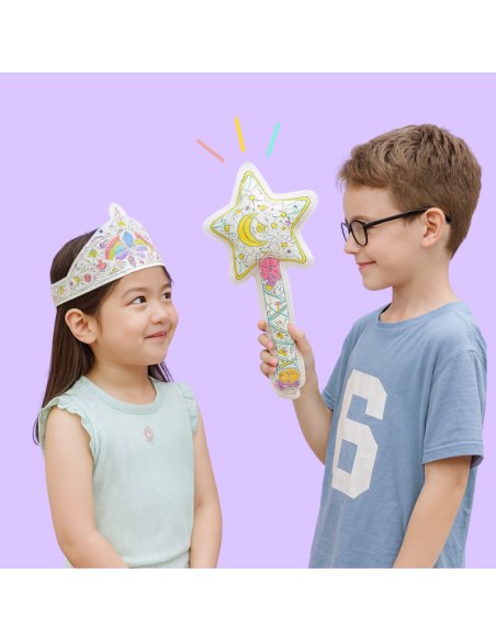Avec la baguette qui scintille et la couronne brillante, les enfants deviennent de véritables princes, princesses, fées ou rois d’un jour. Parfait pour les anniversaires, les fêtes, les spectacles ou tout simplement pour jouer à la maison.