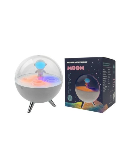Il suffit de la recharger, de choisir le mode d'éclairage adapté et de s'envoler vers des rêves cosmiques. La lampe brille en plusieurs couleurs ou diffuse une lumière chaude et douce.