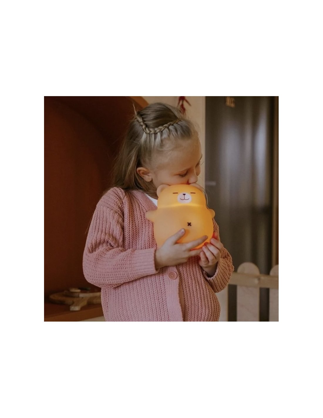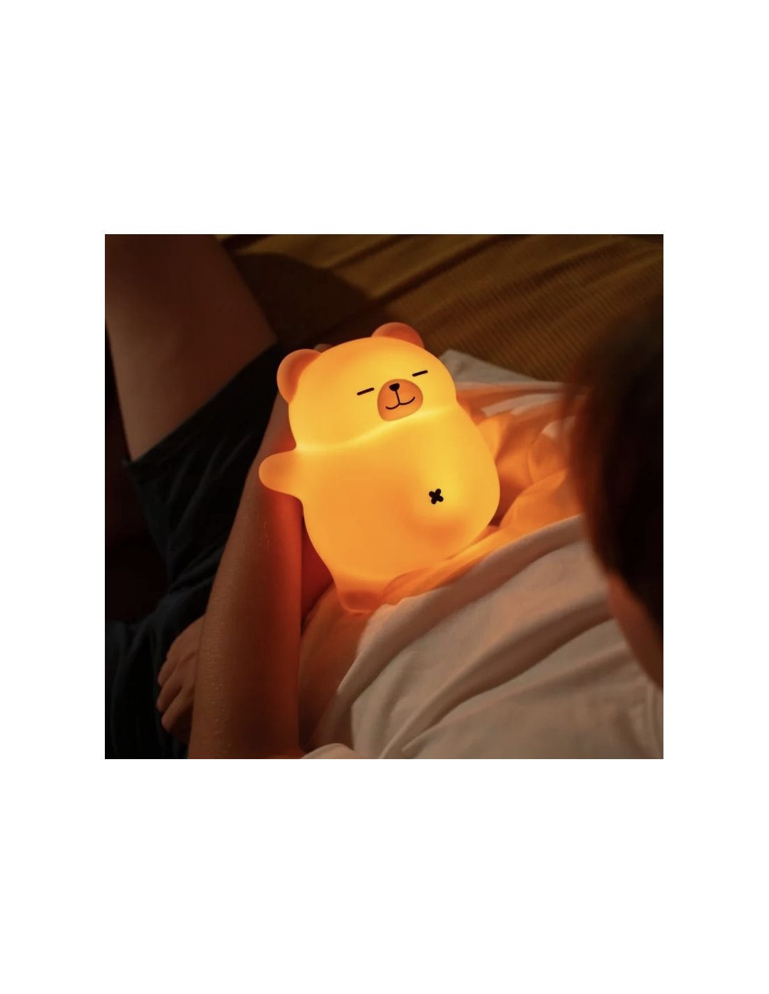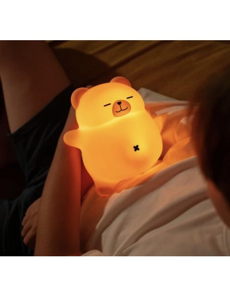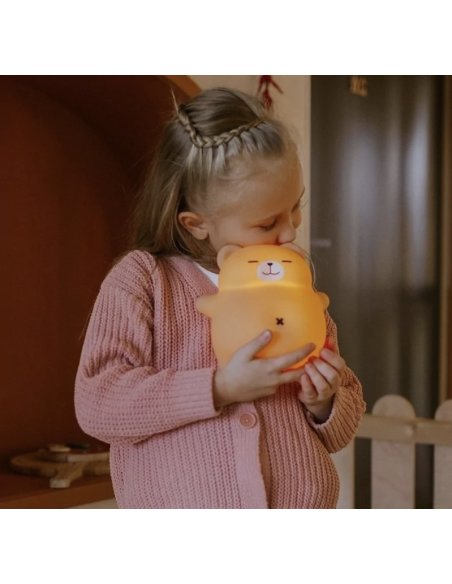 L’ourson diffuse une lumière blanc chaud apaisante (3000K) et possède un ventre unique « respirant » qui monte et descend doucement, imitant une respiration naturelle.