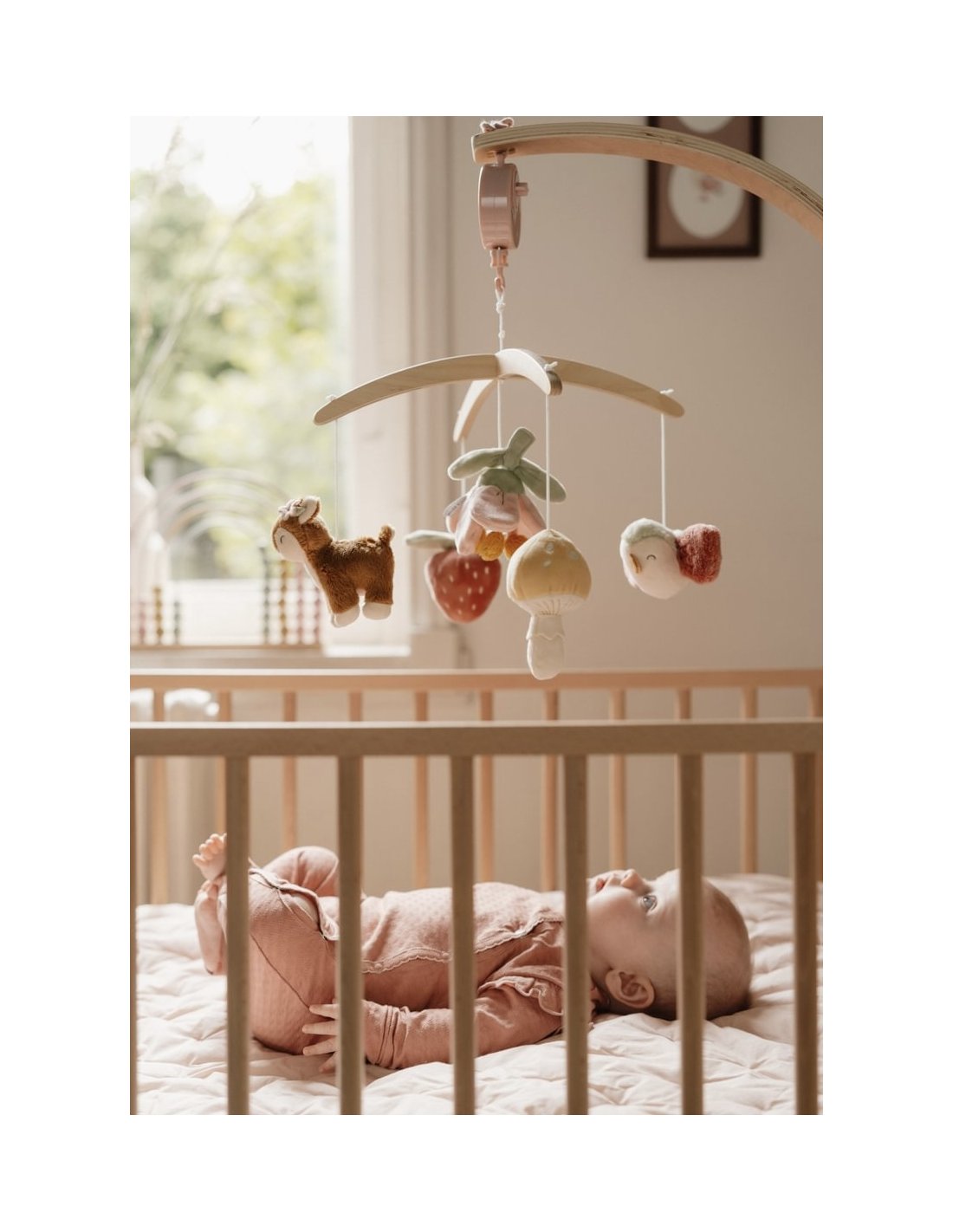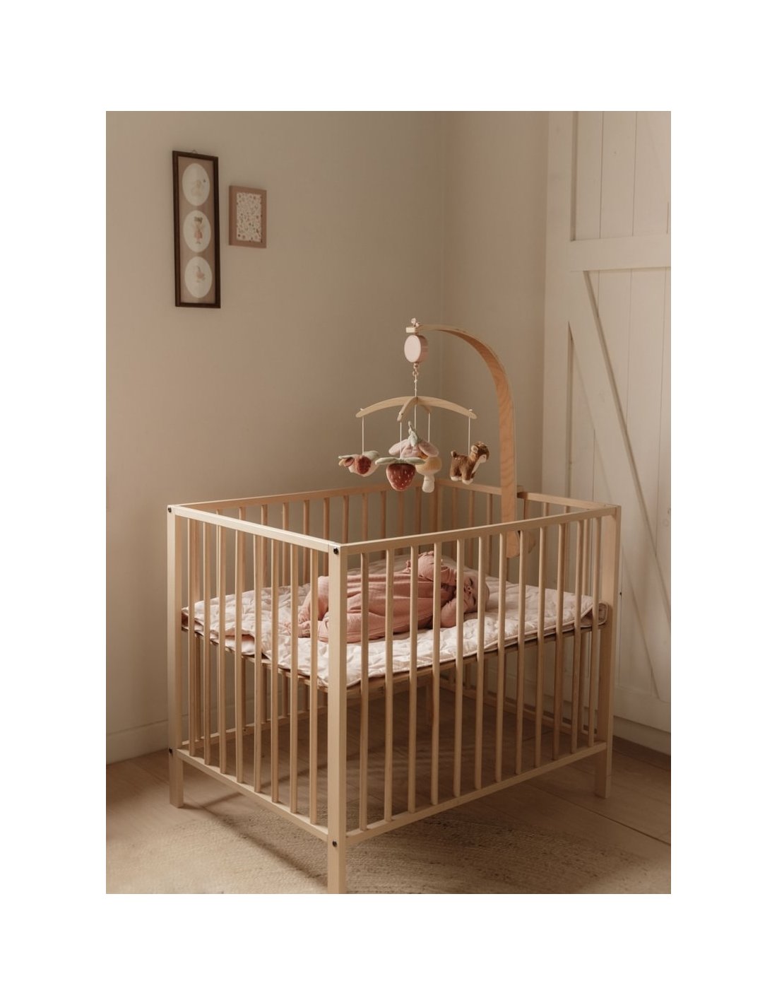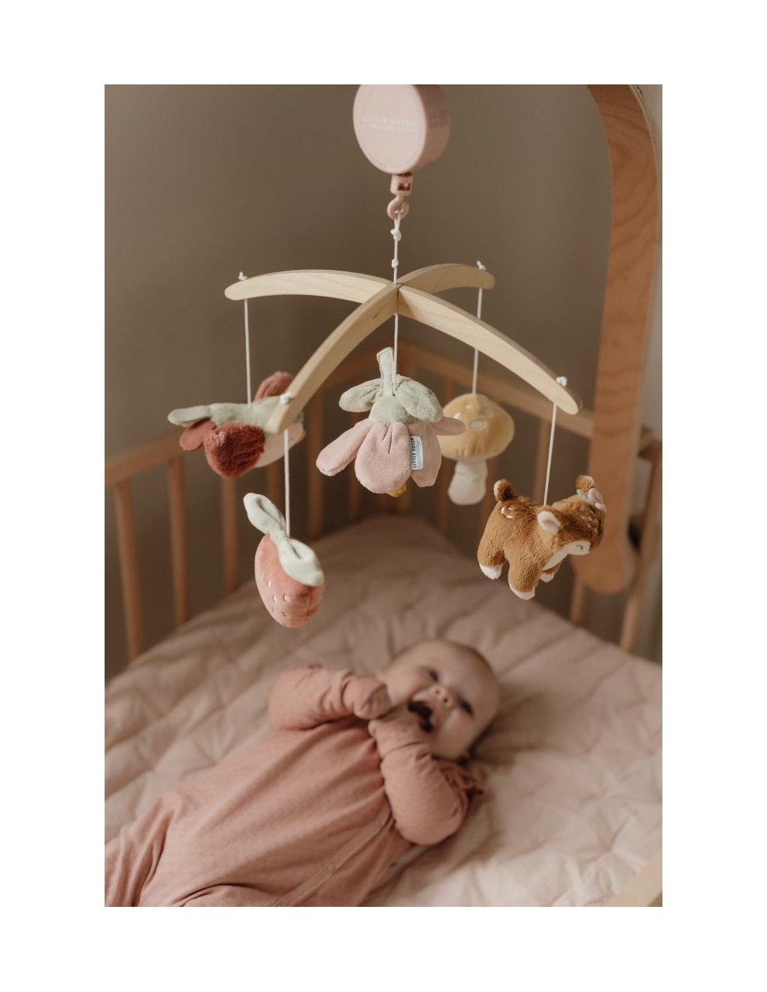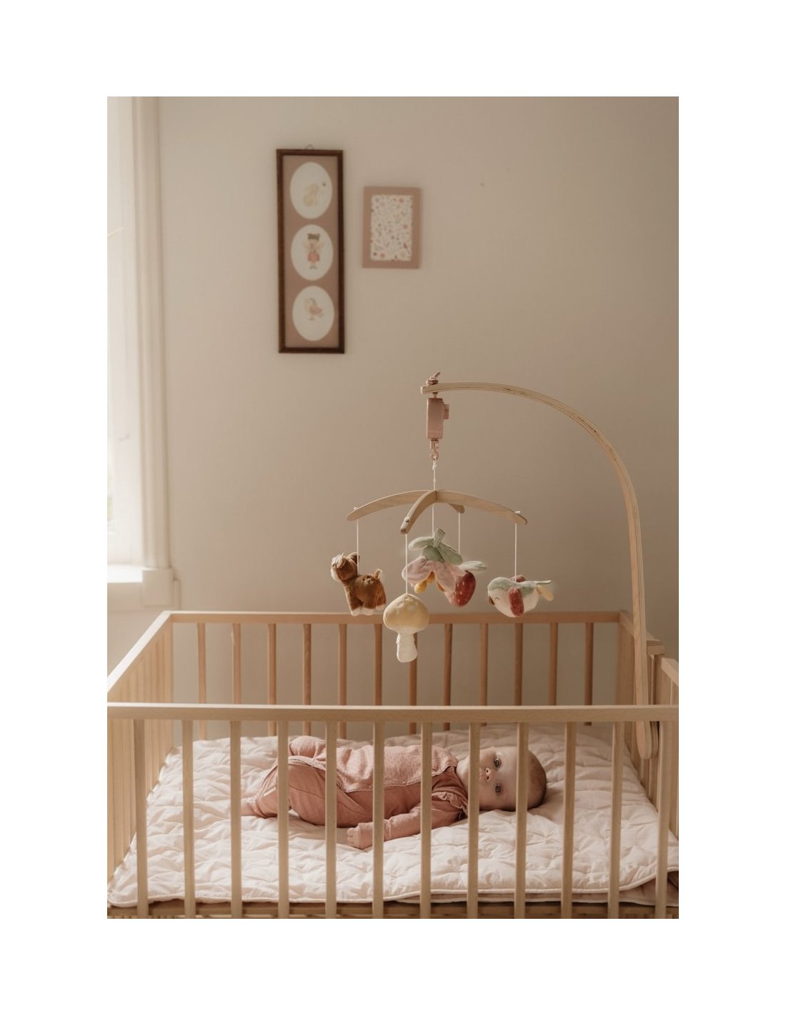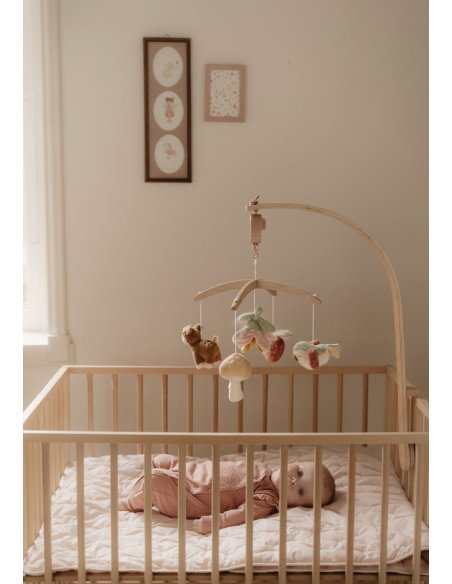 Ce joli mobile musical en bois apaise les bébés grâce à la charmante berceuse. Cinq jouets de la collection Fairy Garden sont accrochés au mobile : un petit faon, une fraise, une fleur, un champignon et un oiseau. Regarder le mobile musical stimulera le développement visuel de bébé. Ce mobile convient à un nouveau-né et peut facilement être fixé à un lit d’enfant ou à un tapis de parc. Associez-le à d’autres éléments de notre collection Fairy Garden comme une peluche.