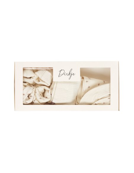 Ensemble bébé comprenant : 2 bavoirs, 2 bonnets naissance et 2 paires de chaussons pour nouveaux nées.