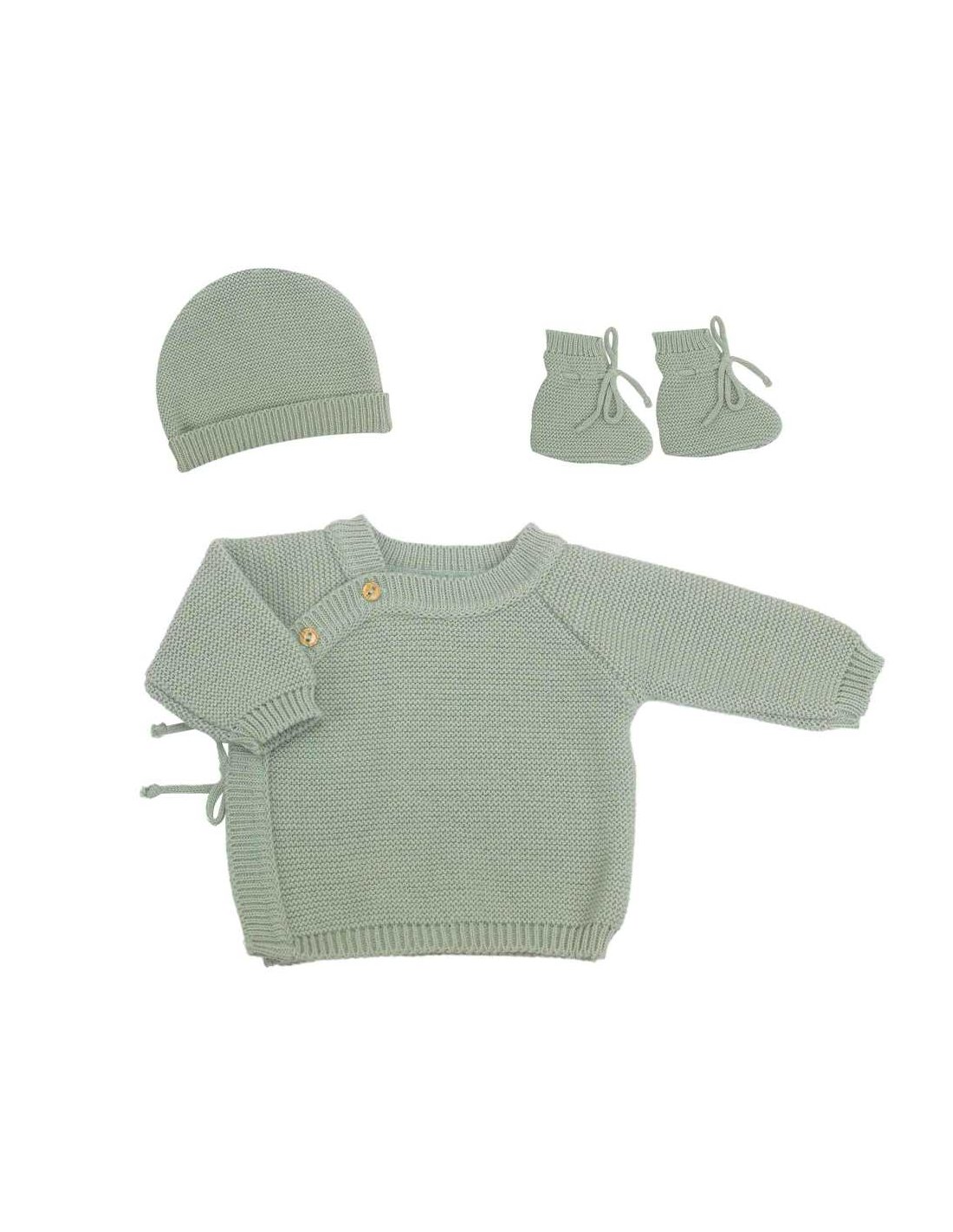 Composé d'une brassière bébé, d'un bonnet naissance et de chaussons bébé, ce lot de trois pièces est indispensable dès la salle de naissance. Vous pourrez enfiler la brassière en dessous du pyjama de votre bébé et les chaussons par-dessus. Disponible en plusieurs coloris, vous pouvez également l'utiliser pour créer de jolies tenues avec un petit pantalon. Elle est facile à enfiler grâce à son ouverture en cache-cœur et à attacher avec ses liens à l'intérieur. Les chaussons sont ajustables grâce à des liens pour ne pas glisser. De la tête aux pieds, votre nourrisson sera bien au chaud et confortable pour vivre les premiers instants de sa nouvelle vie !