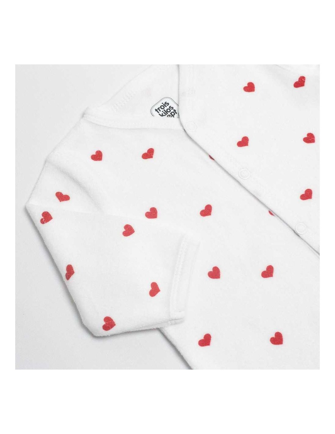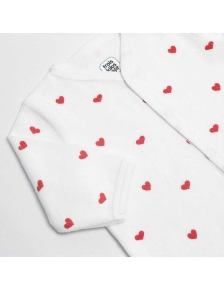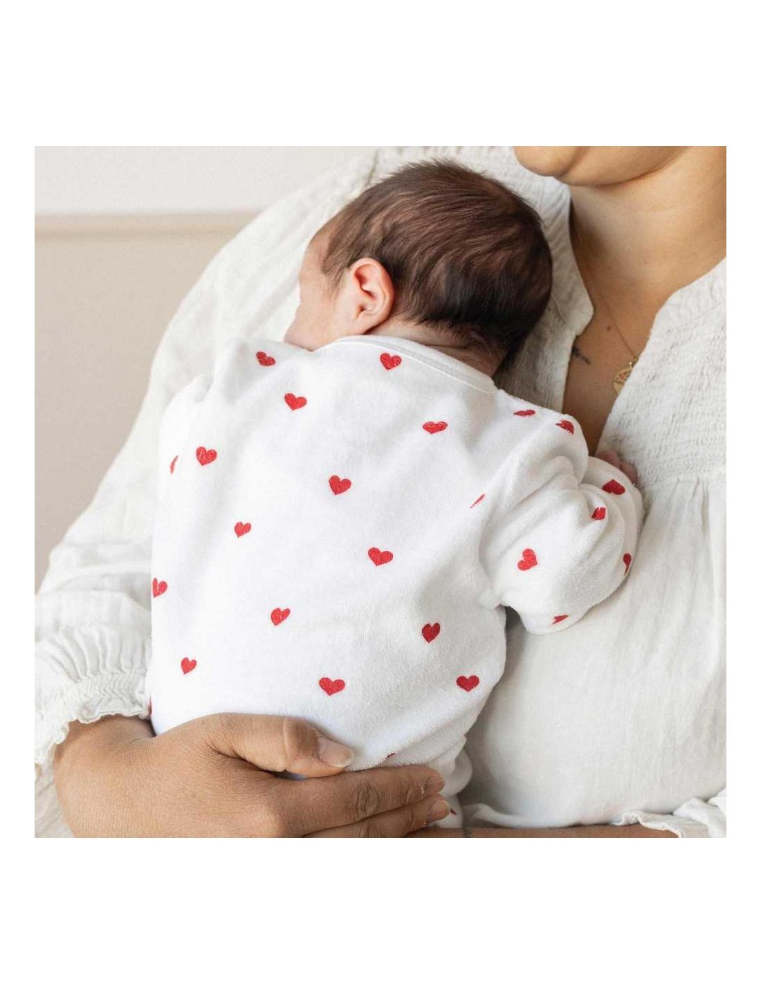 Ce dors-bien à manches longues, avec ses adorables petits cœurs rouges, apportent une touche de douceur et de gaieté, parfaite pour habiller bébé avec tendresse.