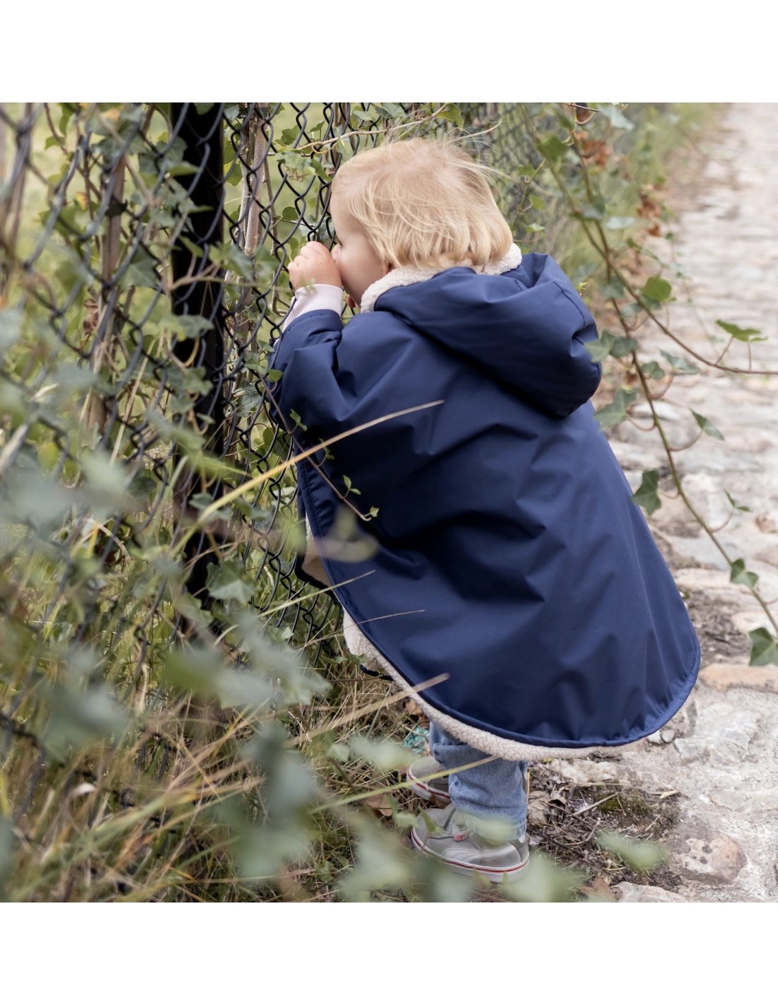 Coupe-vent et imperméable, le poncho en tissu coating apporte une protection contre la pluie et la neige. Doublé d'un doux et moelleux teddy, il est bien chaud et très confortable.