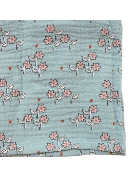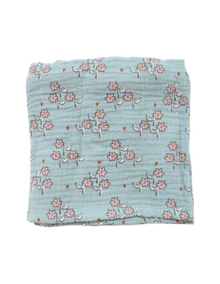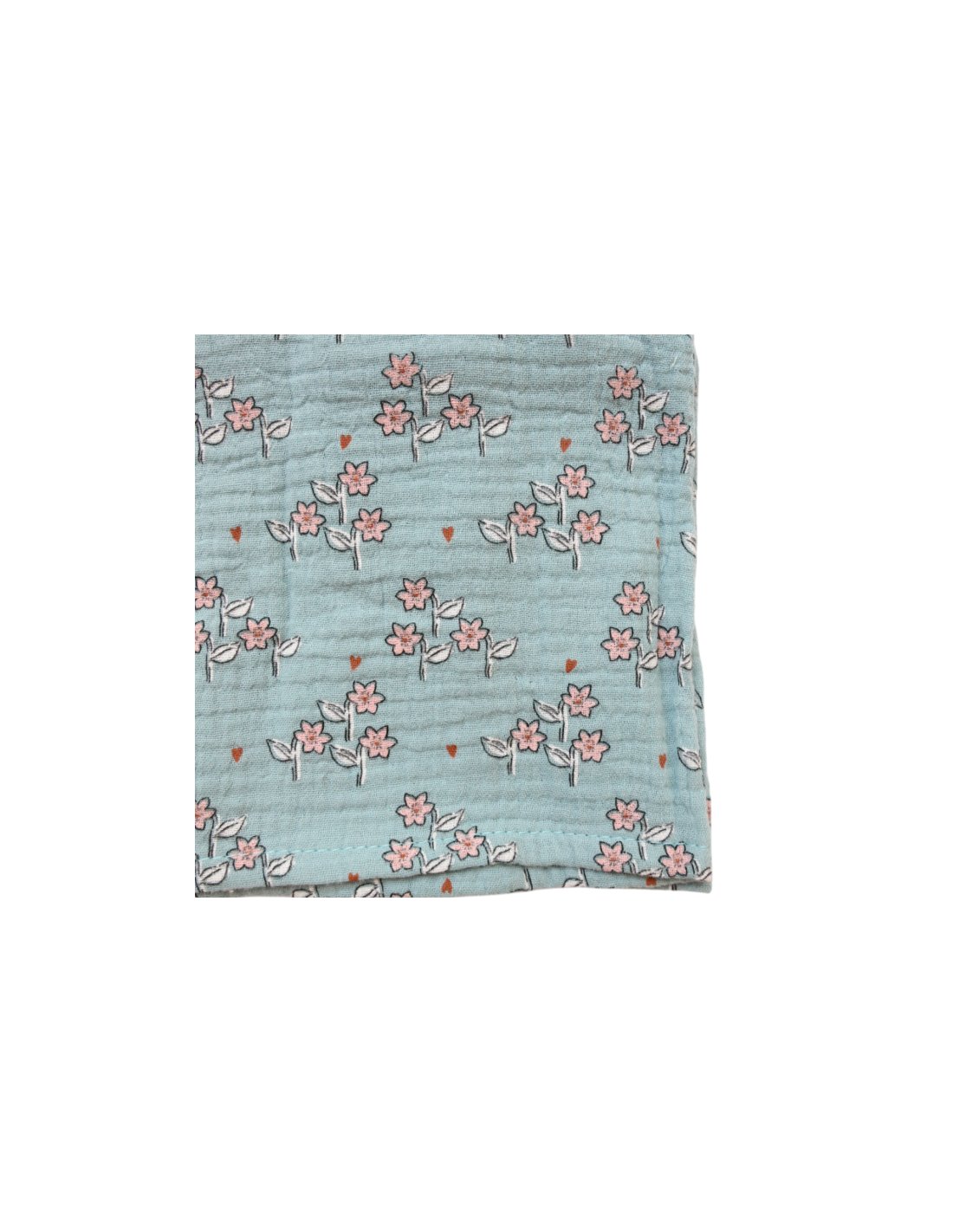 Avec ses motifs fleurs des champs pastel et son format compact 70x70 cm, le lange bébé fleuri bleu glisse facilement dans le sac à langer pour toutes les sorties avec bébé. Léger et respirant, il s’utilise aussi bien en couverture légère qu’en bavoir improvisé, et sera vite l'accessoire parfait et indispensable à emmener.
