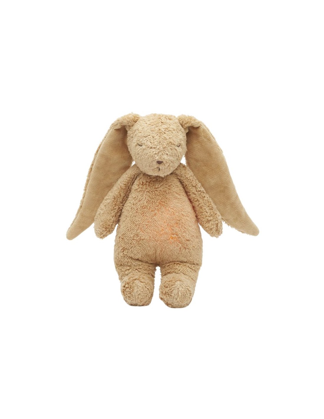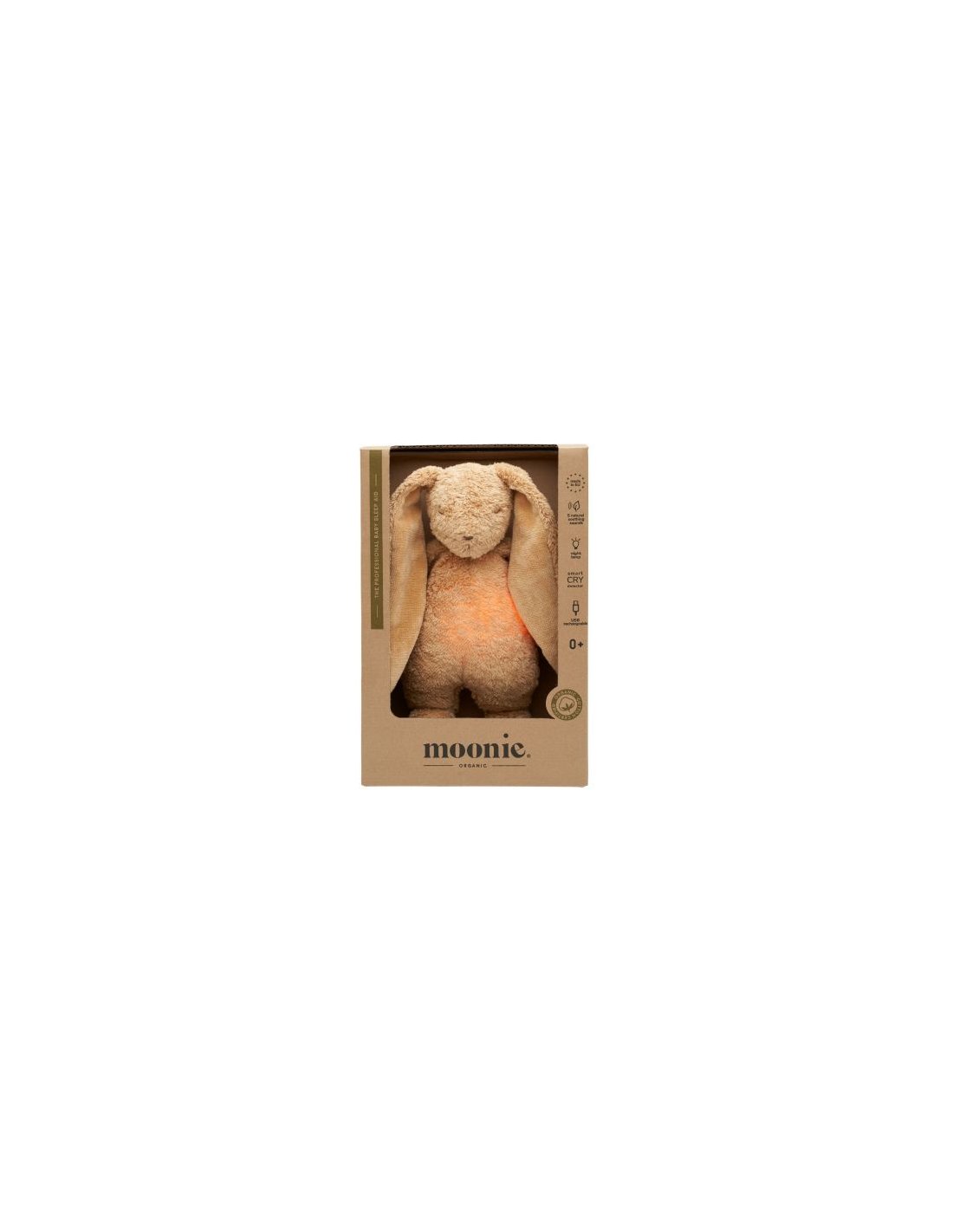 Le lapin magique pour des nuits de rêve ! Retrouvez les adorables lapins au look rétro de Moonie dans leur toute dernière version : Désormais fabriqués à partir d’un coton biologique européen d’une qualité encore supérieure, en utilisant un procédé de fabrication qui assure un résultat encore plus solide et durable. Choisissez entre les 5 sons apaisants ou la berceuse musicale : Dans le ventre de maman * Le vent * Un ruisseau sous les bois * Les vagues * La pluie ou encore la berceuse apaisante composée spécialement pour les nouveau-nés. Veilleuse intégrée personnalisable : Une lumière délicate qui apaise bébé et le rassure. 5 modes de lumière apaisante / 7 couleurs intermittentes / Choix de la couleur préférée. Capteur de pleurs intelligent : Après 30 minutes à émettre des sons apaisants, l’appareil se met en pause et réactive les sons quand bébé se met à pleurer. Utilisable dès la naissance. Facile à utiliser. Rechargeable par USB (câble USB fourni).