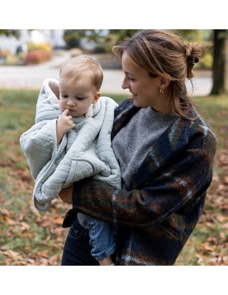 Bien chaud et très pratique, le poncho est le manteau idéal pour balader en poussette, voyager en voiture et dans le porte bébé.