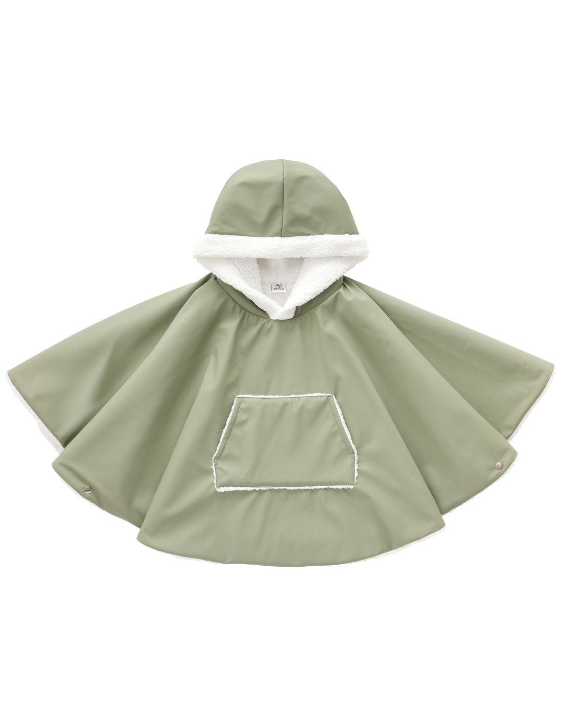 Poncho imperméable ciré vert sauge / sherpa blanc - BB&Co